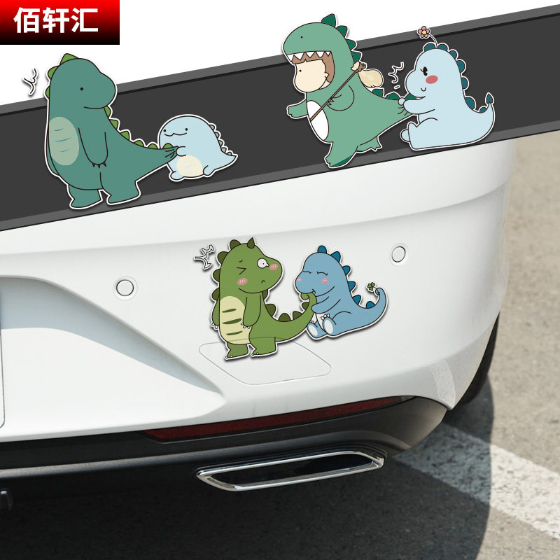小恐龙拽尾巴汽车贴纸个性创意卡通电动车摩托车划痕遮挡装饰车贴