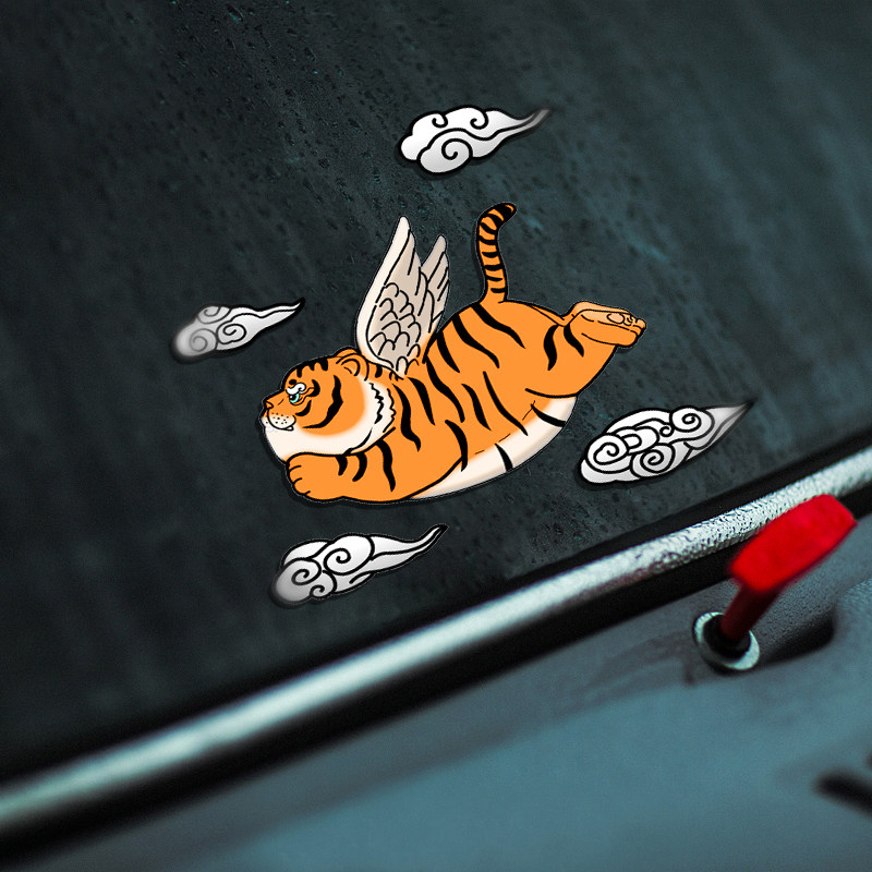 2022虎年车贴如虎添翼老虎贴纸国潮侧窗玻璃贴摩托车装饰贴反光贴