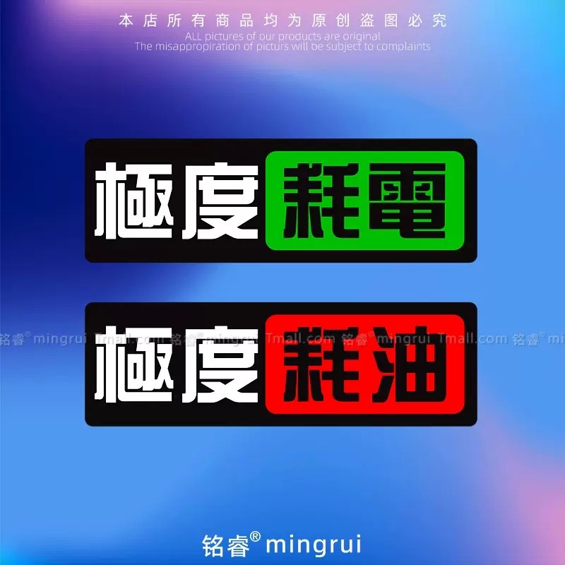 极度耗油耗电JDM改装饰汽车贴纸电动摩托车身划痕遮挡个性反光贴