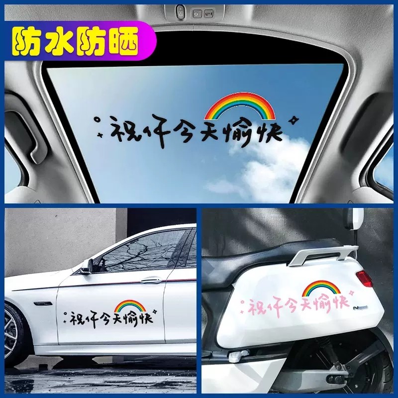 祝你今天愉快车贴创意个性文字后挡风天窗电动摩托车贴纸网红车贴