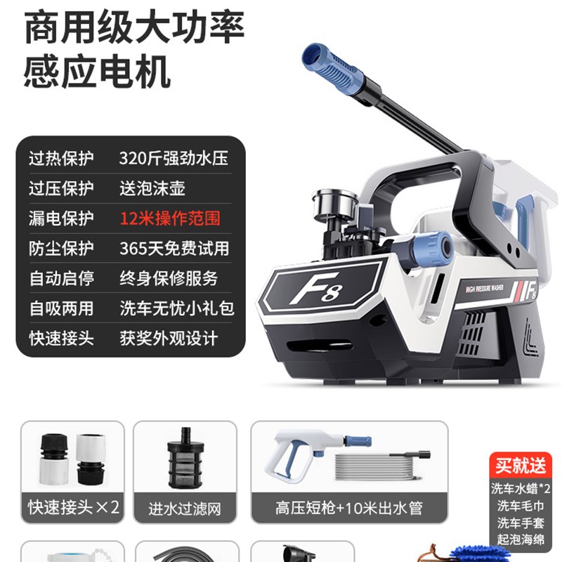 洗车高压水枪家用洗车机车用220v清洗机强力洗地泵神器无线大功率