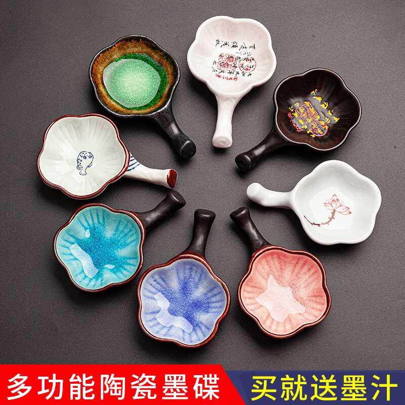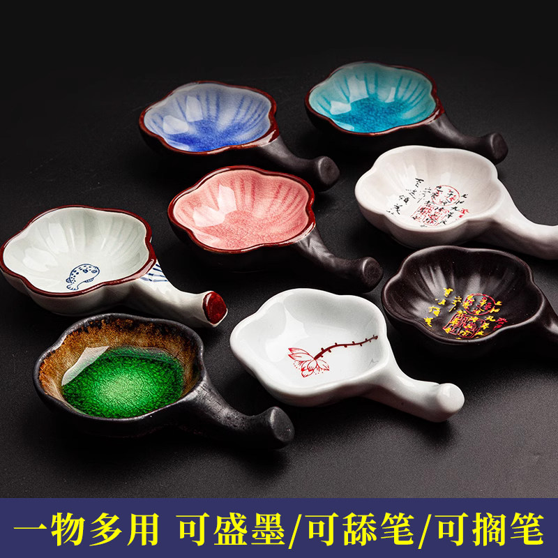 御宝阁陶瓷墨碟墨蝶笔搁笔山毛笔架文房四宝专用墨汁墨水水碟墨池