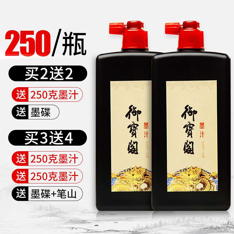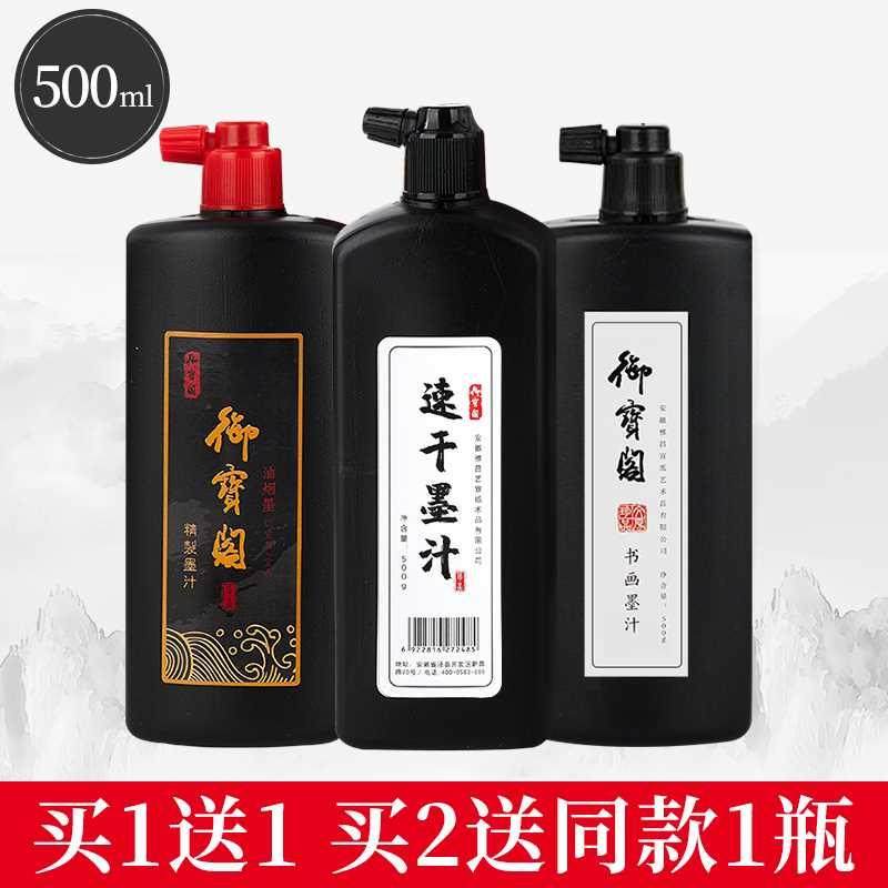 御宝阁正品大容量整箱黑墨汁1kg书法专用墨汁500g国画初学者学生练习毛笔墨水套装文房四宝用品250g小瓶批发
