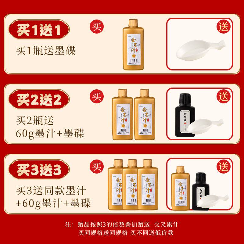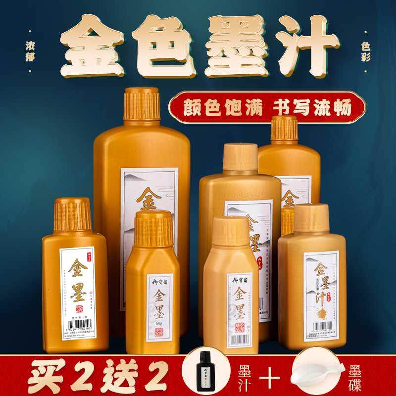 御宝阁金色墨汁毛笔墨水学生用写对联纸书法专用快干朱砂墨墨液国
