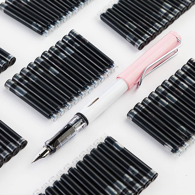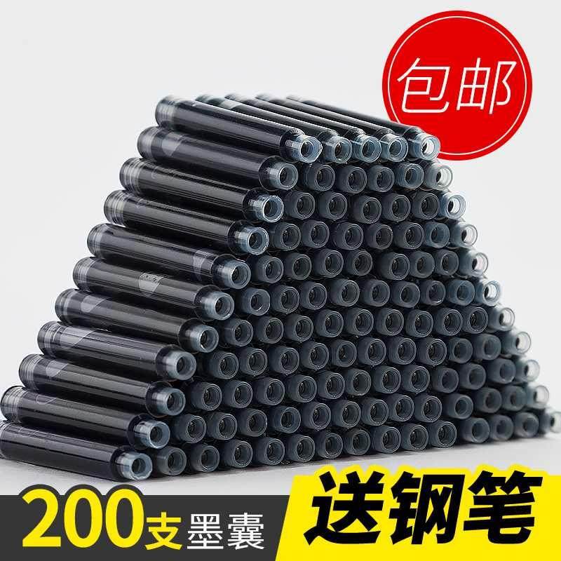 御宝阁墨囊200支钢笔墨囊可替换褪色纯蓝小学生用黑色墨水墨胆三