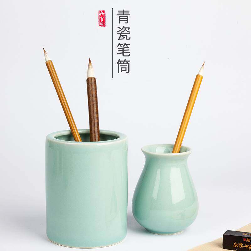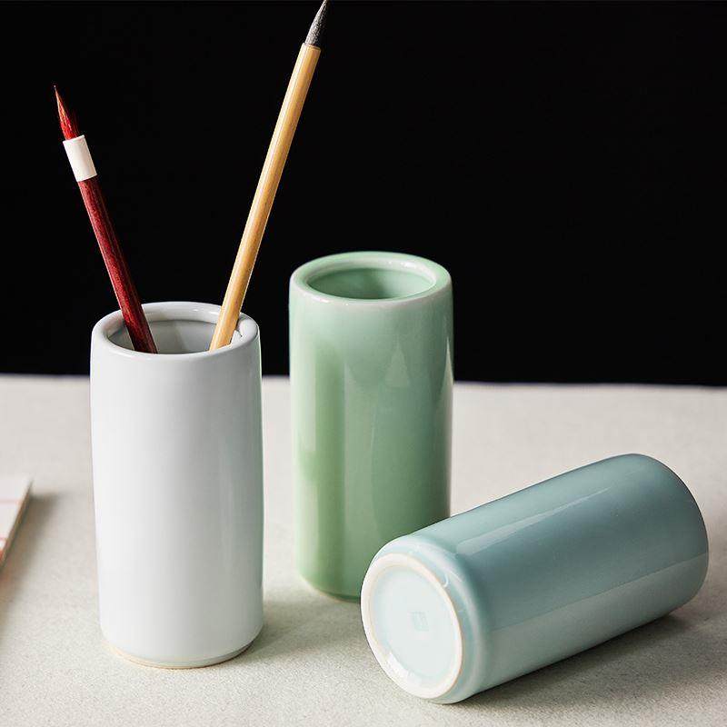 御宝阁陶瓷毛笔笔筒大容量桌面文具收纳盒复古中国风简约创意可爱