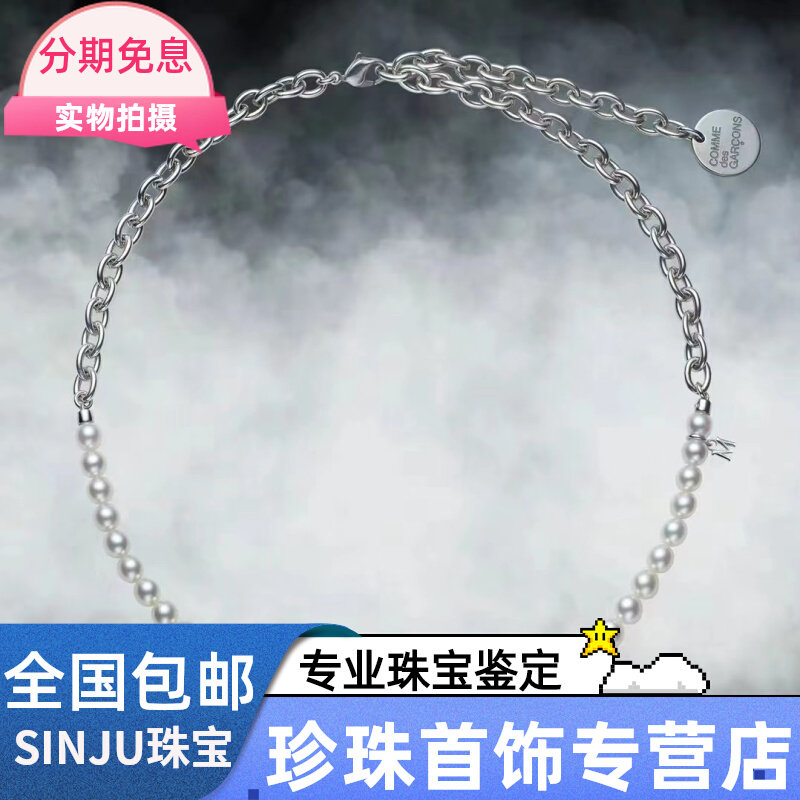 【mikimoto御本木珍珠项链】天然黑白珠男女款锁骨链个性925银链