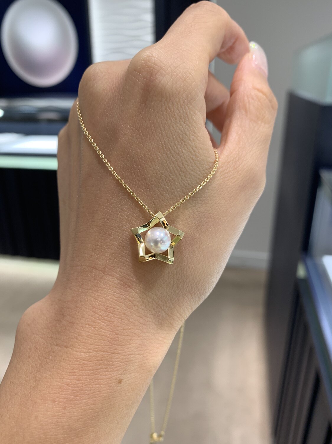香港MIKIMOTO御木本18白金黄金Akoya海水珍珠五星造型女生项链