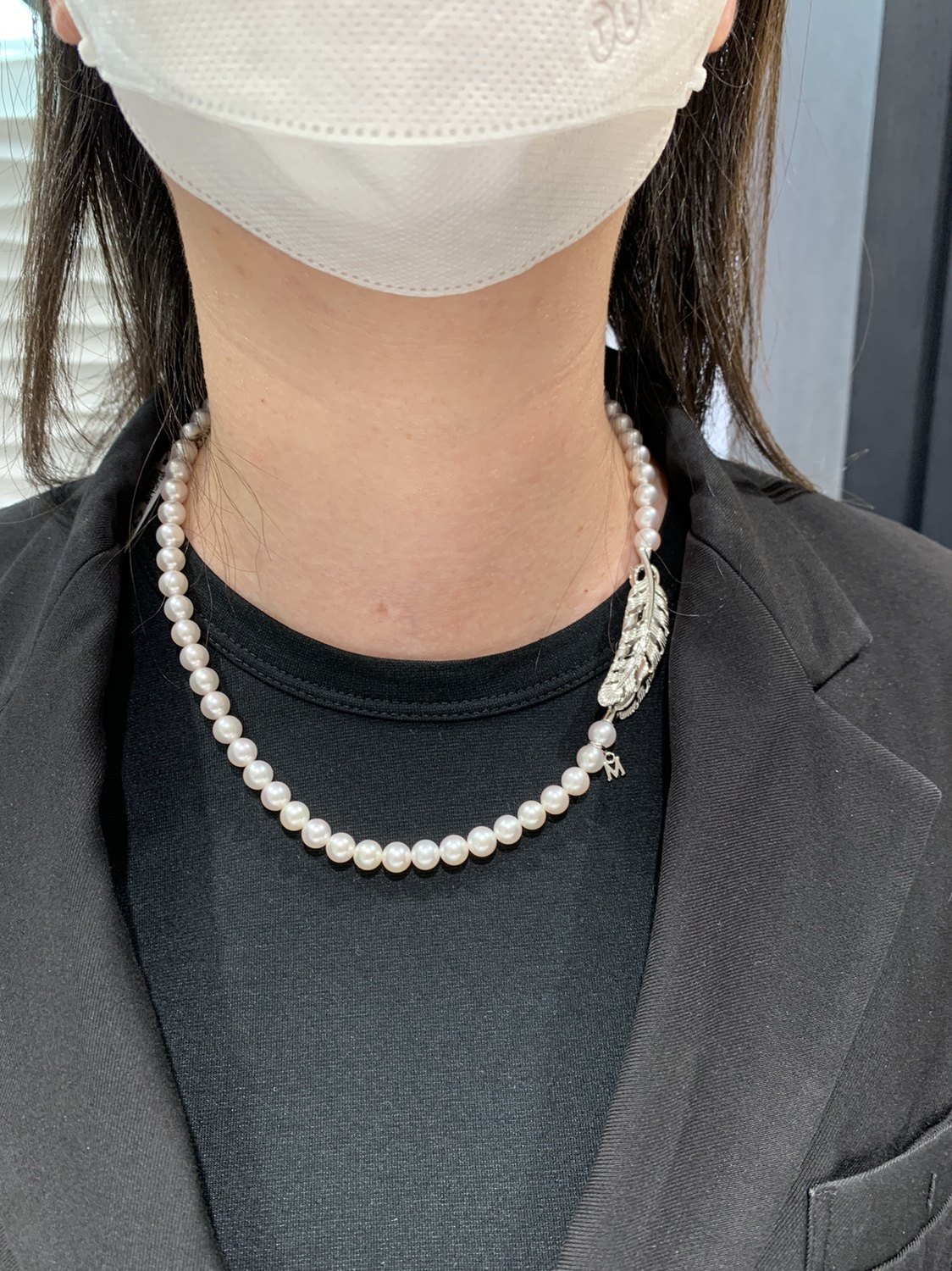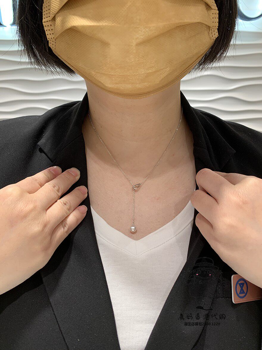 香港Mikimoto 925纯银羽毛扣akoya珍珠串链项链6.5-7mm有趣可变化