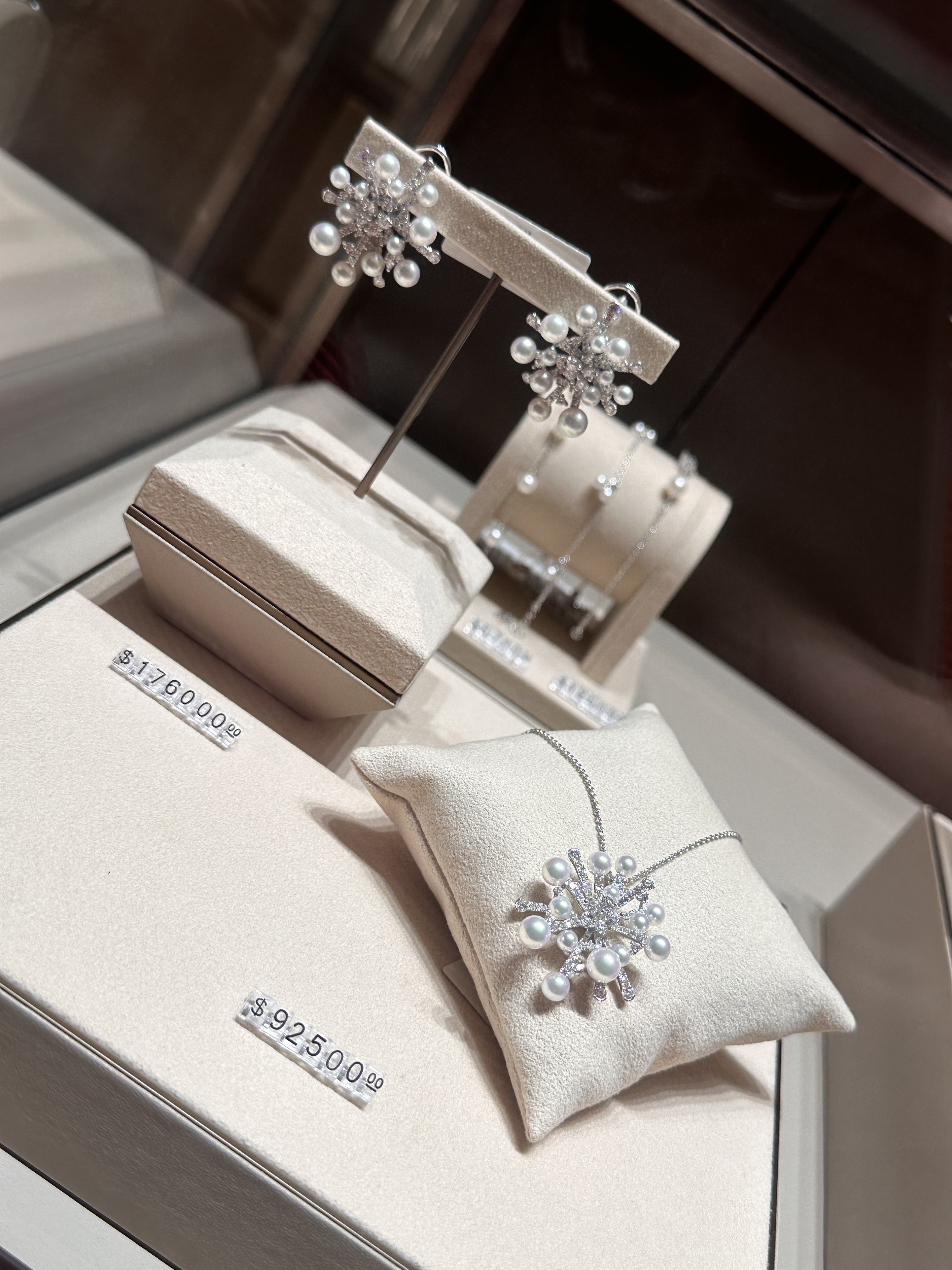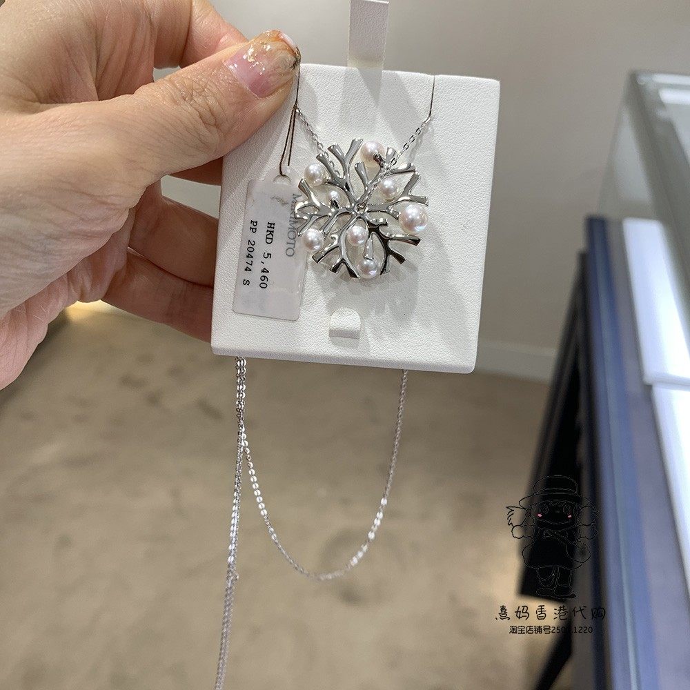 香港MIKIMOTO御木本18k白金钻石款雪花造型珍珠耳环,女士项链