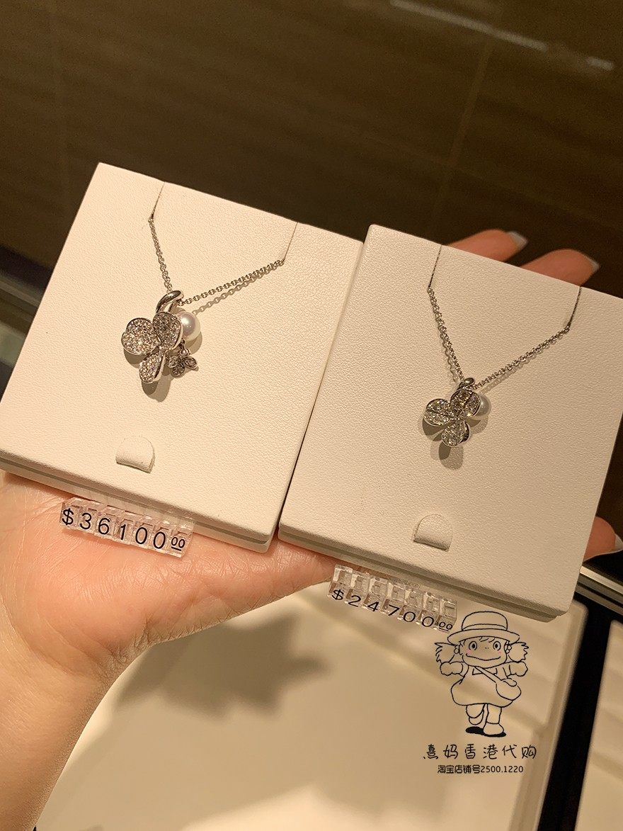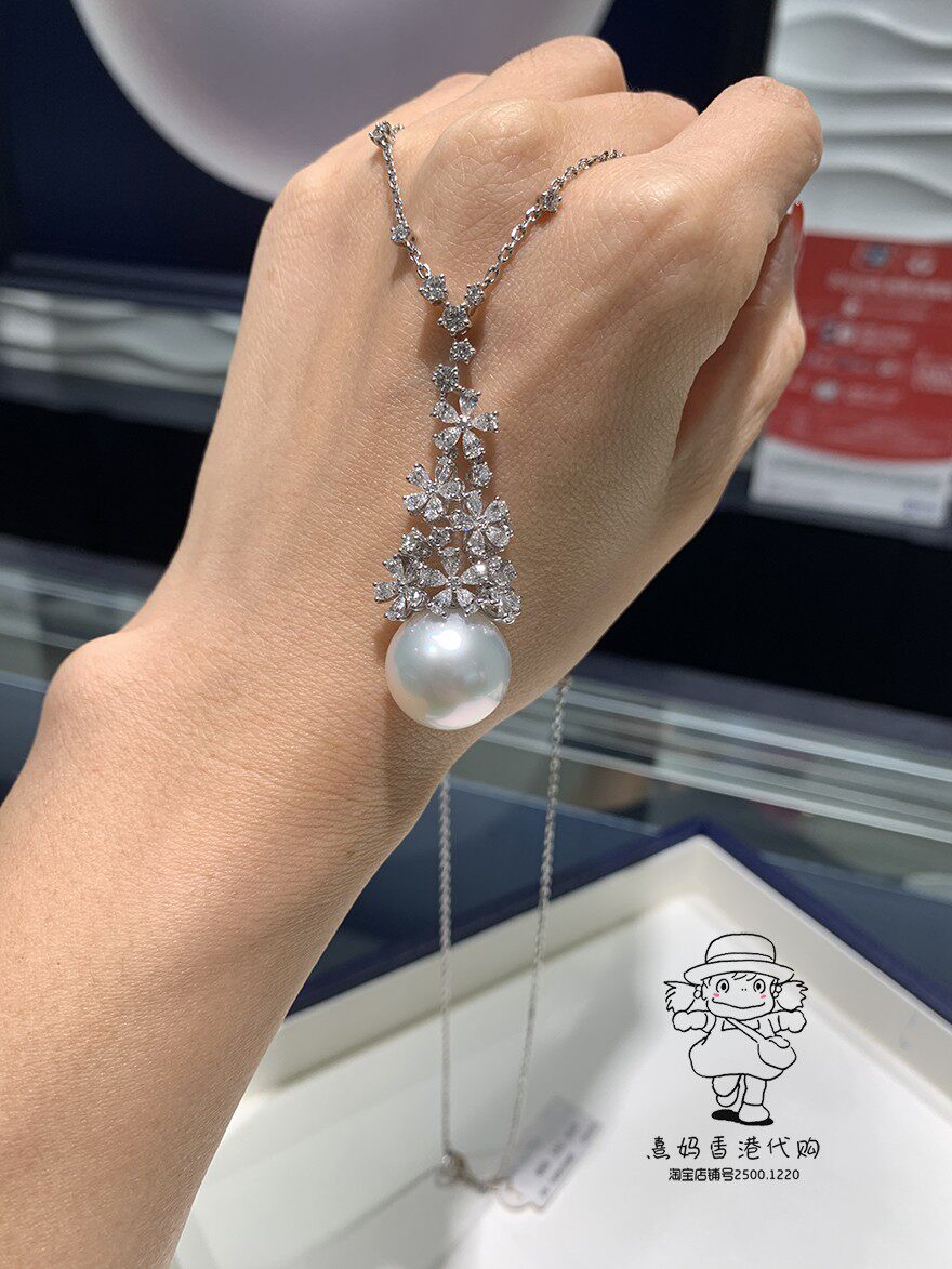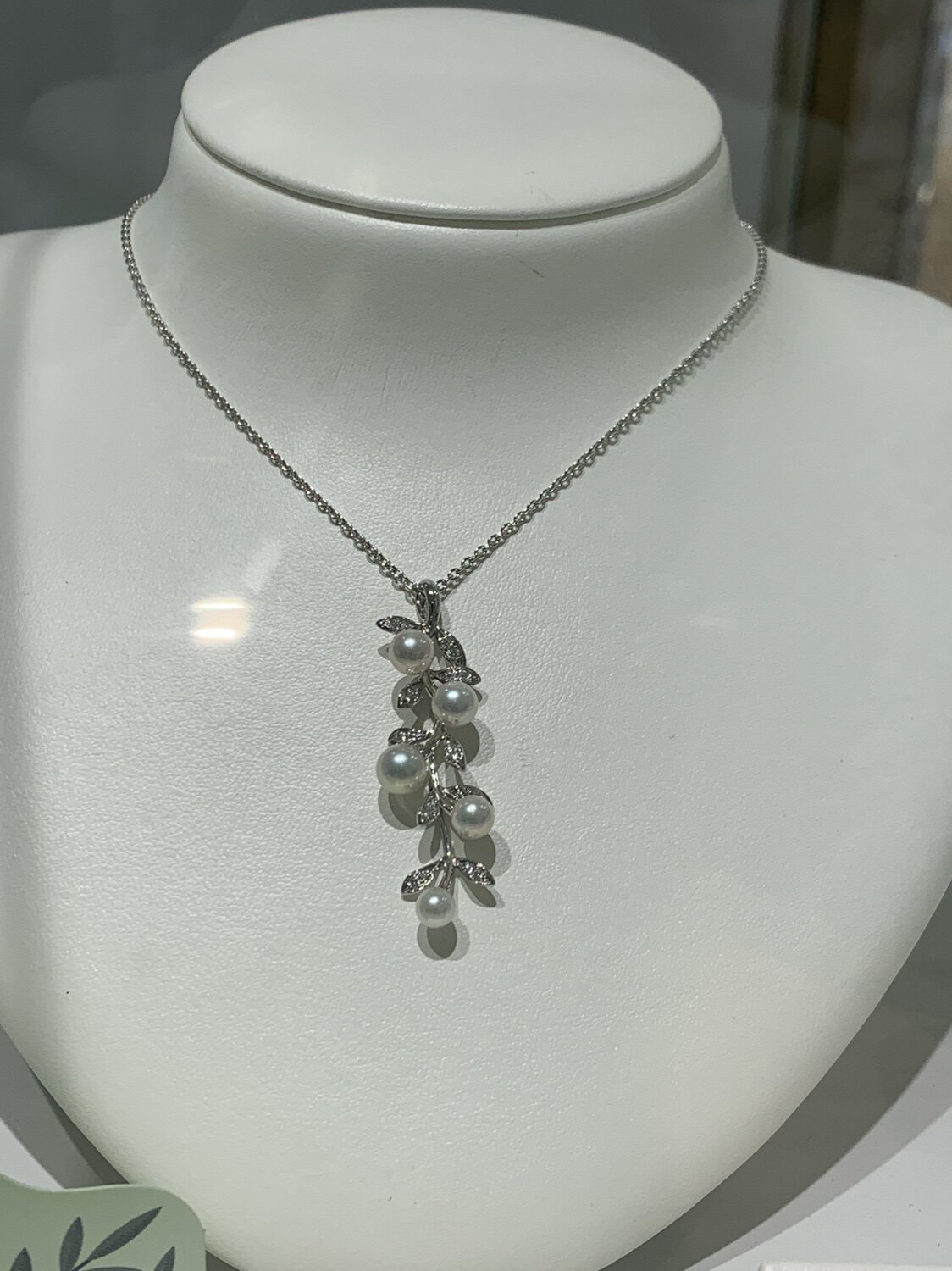 香港MIKIMOTO御木本18k白金钻石akoya海水珍珠橄榄枝女生项链