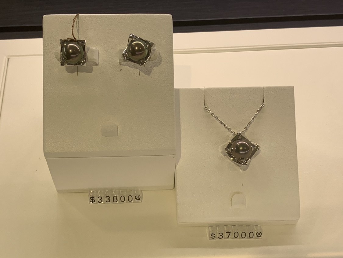 香港MIKIMOTO御木本18白金大溪地黑珍珠M字母造型女生耳环项链