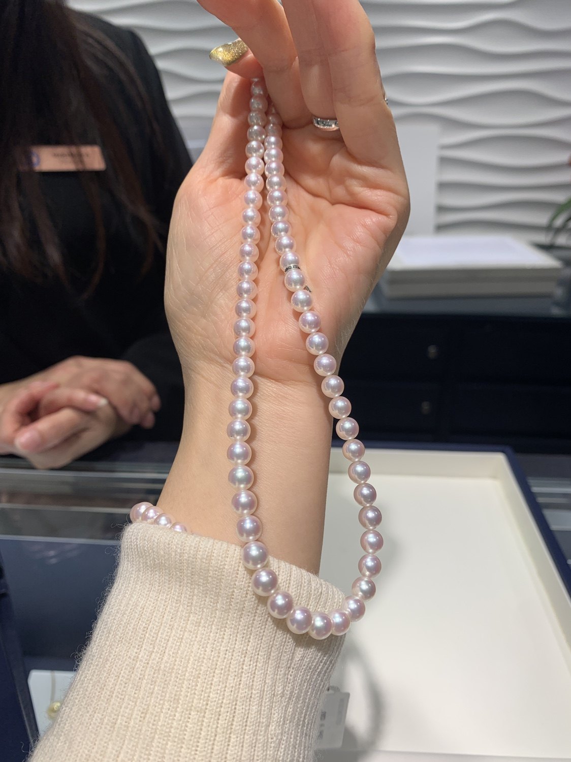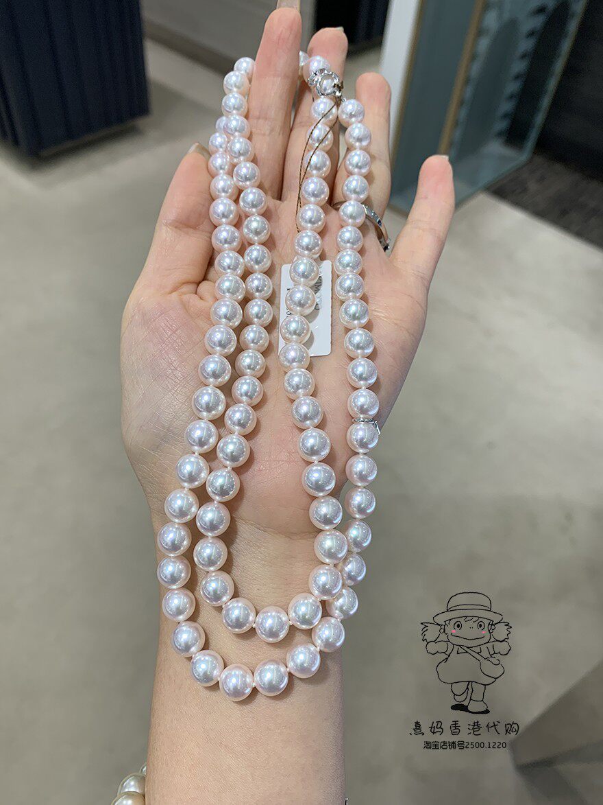 香港Mikimoto 新款18k白金小球扣akoya珍珠项链串链6-8.5mm67颗