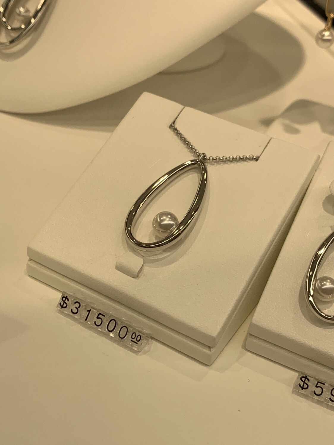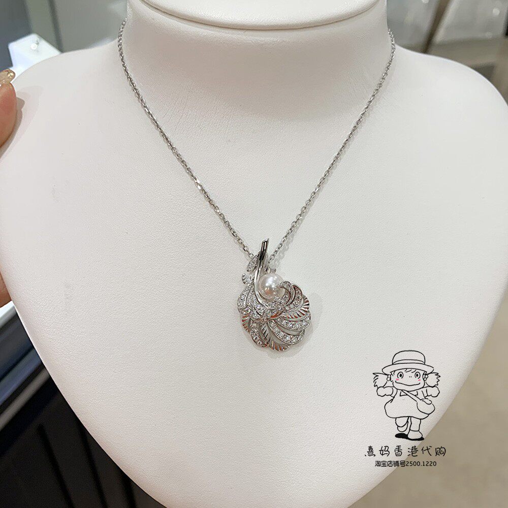 香港MIKIMOTO御木本18k白金钻石镶akoya珍珠羽毛系列抽拉女生项链