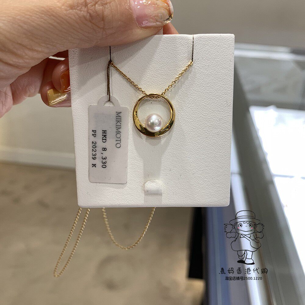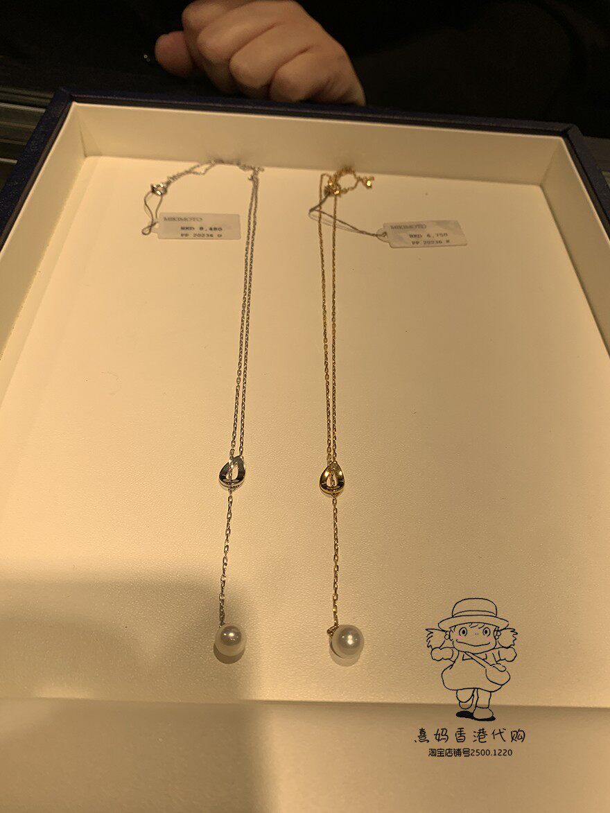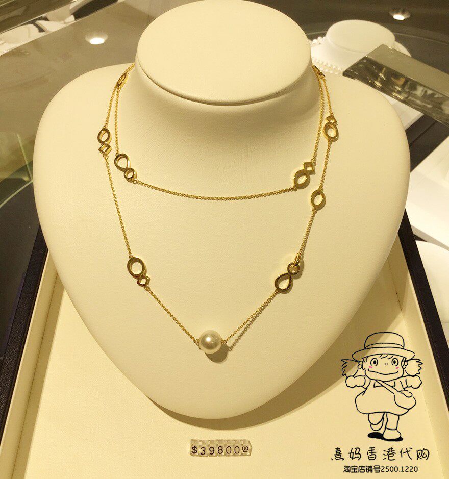 香港MIKIMOTO御木本18k金M字母款akoya海水珠女生珍珠项链50cm