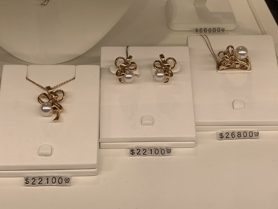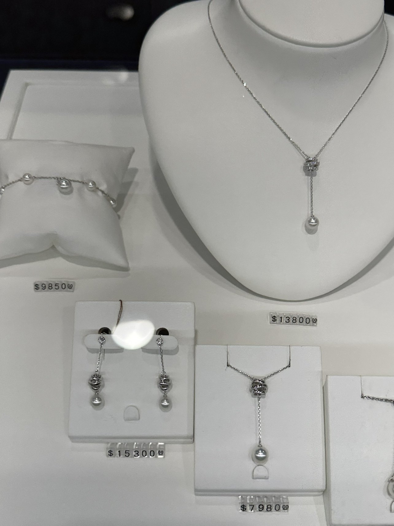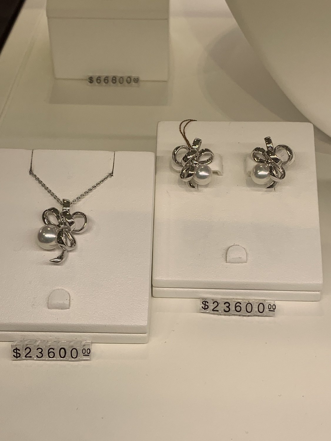 香港MIKIMOTO御木本18k白金钻石珍珠打结款女生耳环项链成套系