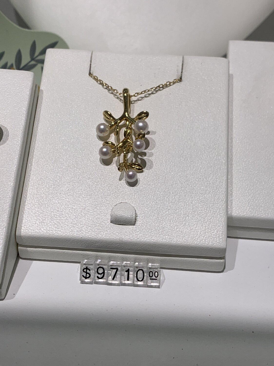 香港MIKIMOTO御木本925纯银海水珍珠珊瑚枝型吊坠项链