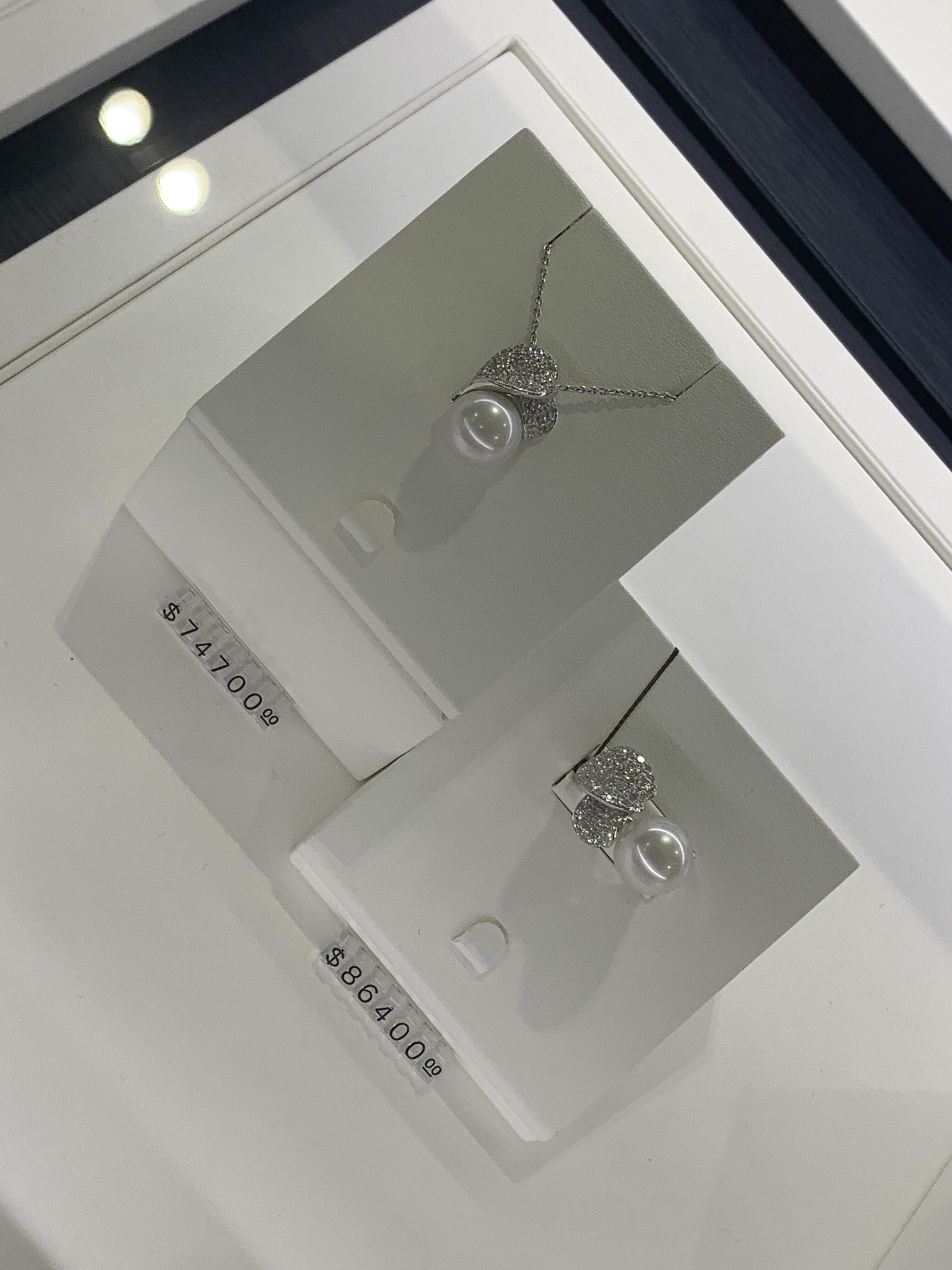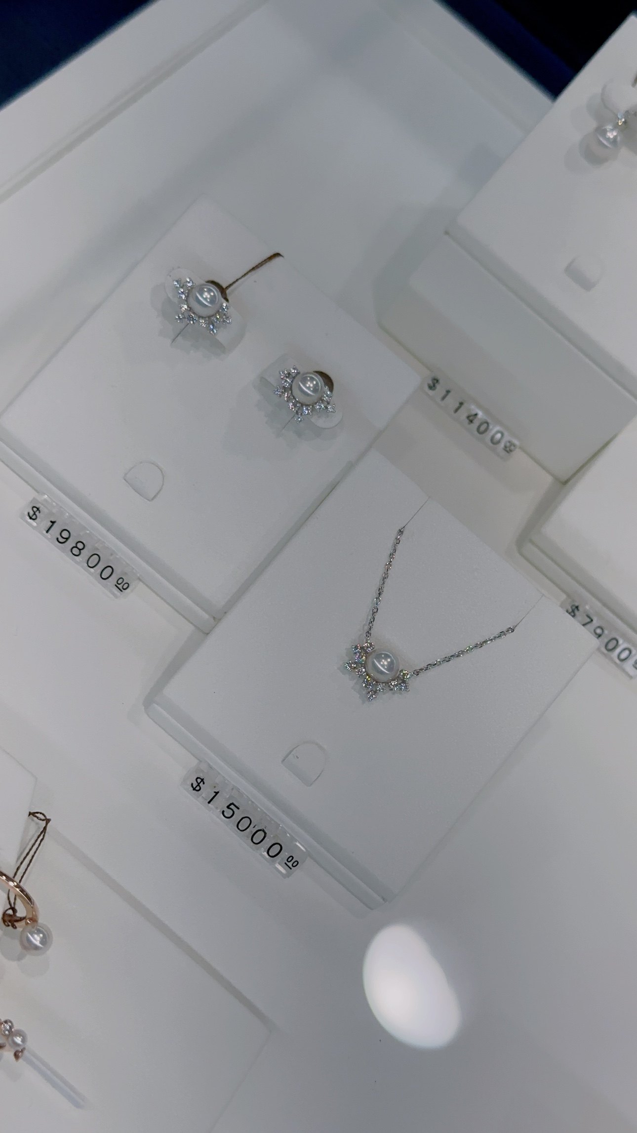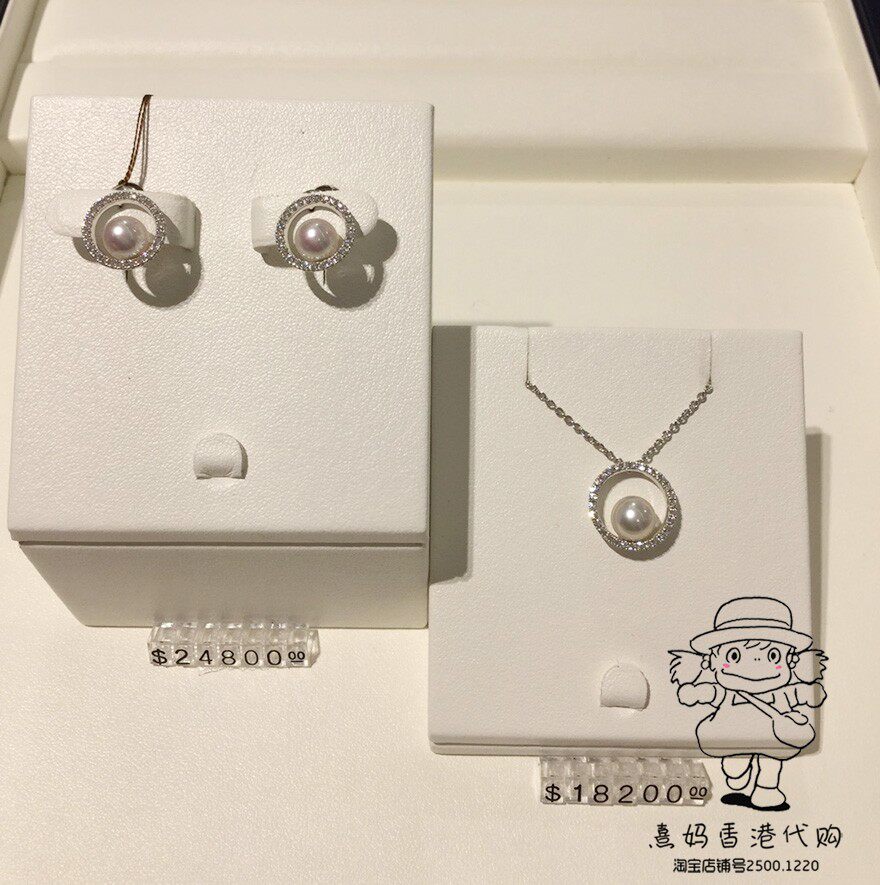 香港 MIKIMOTO御木本18K白金akoya珍珠半圈钻女生耳钉项链这套美
