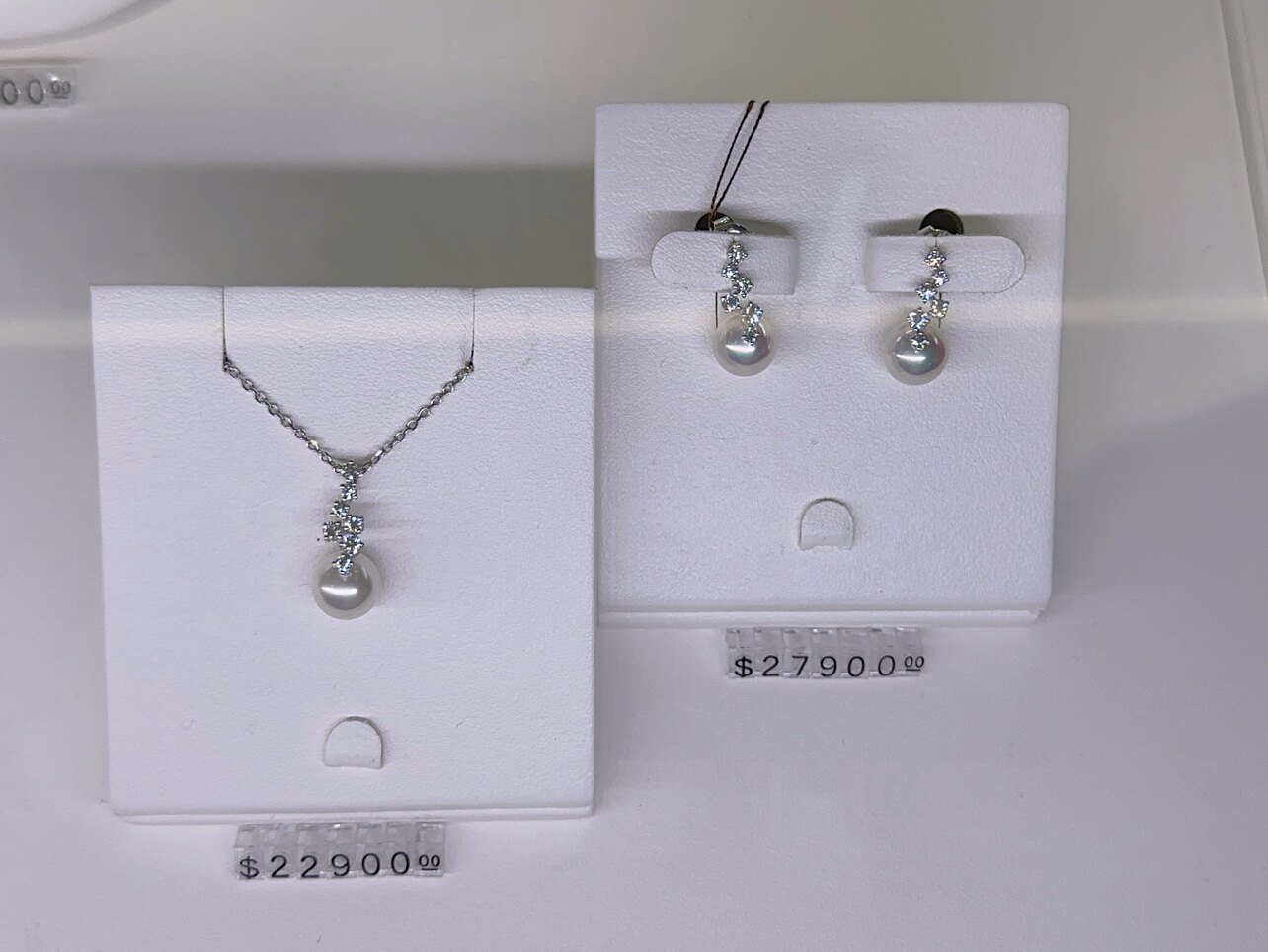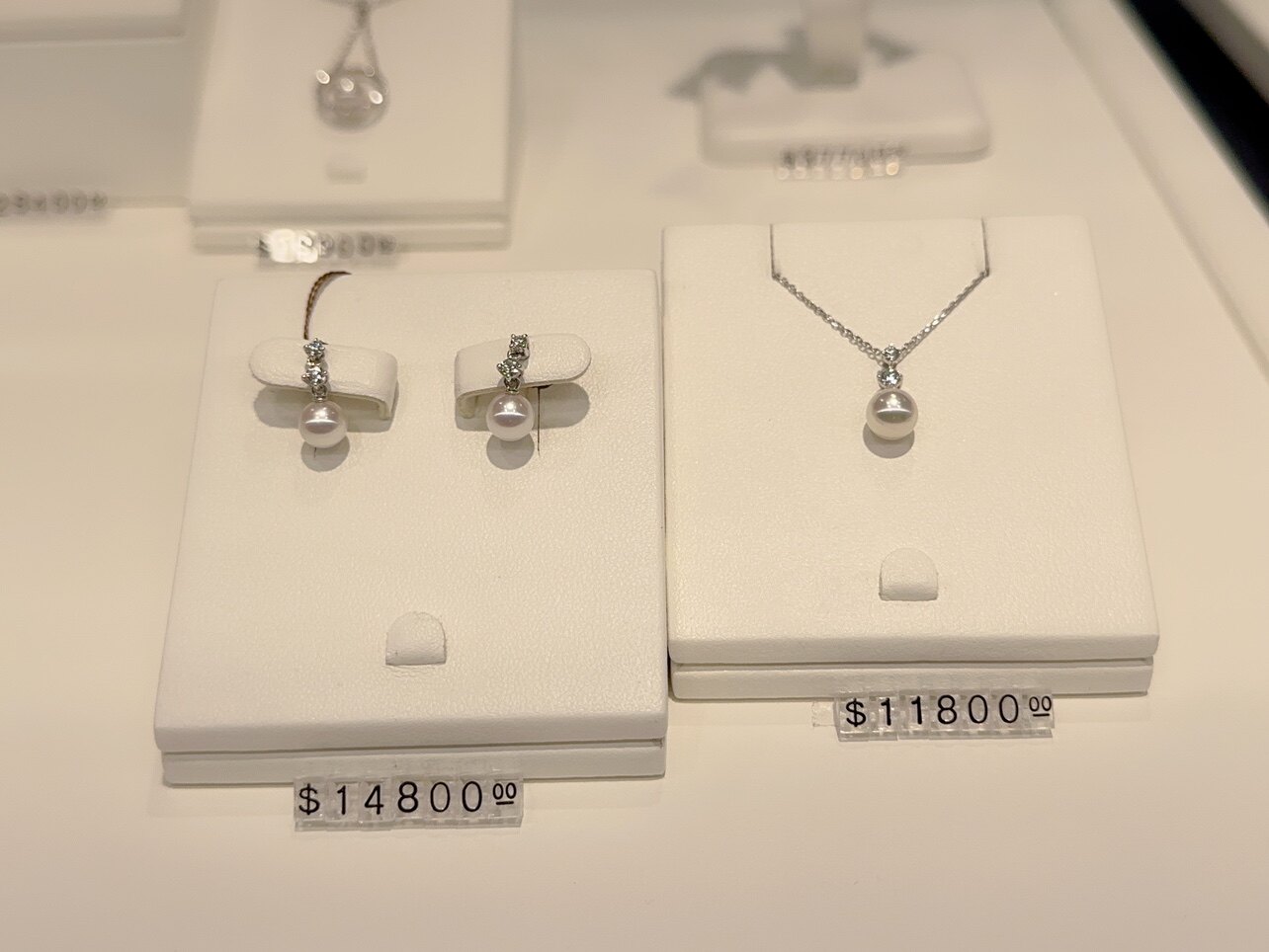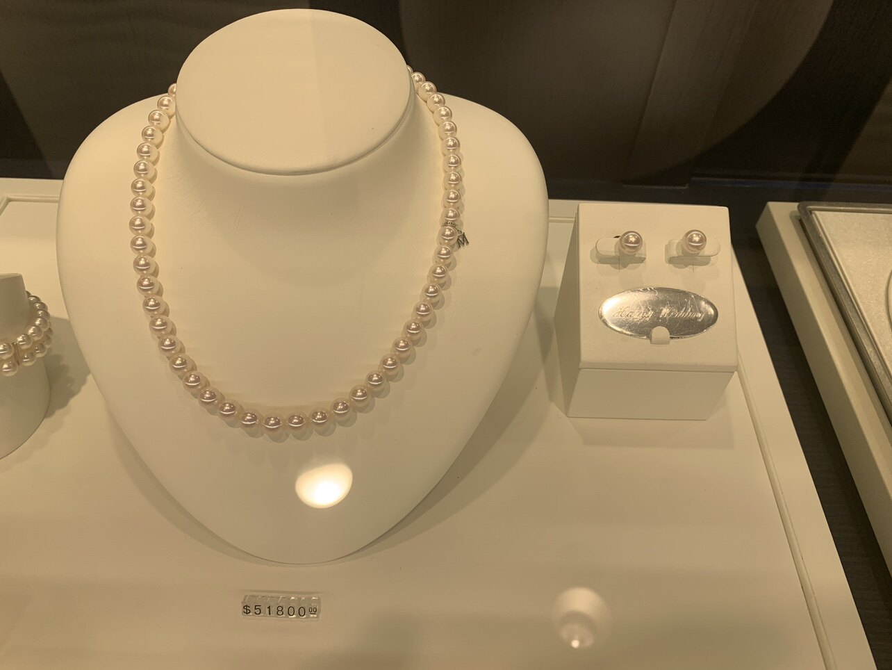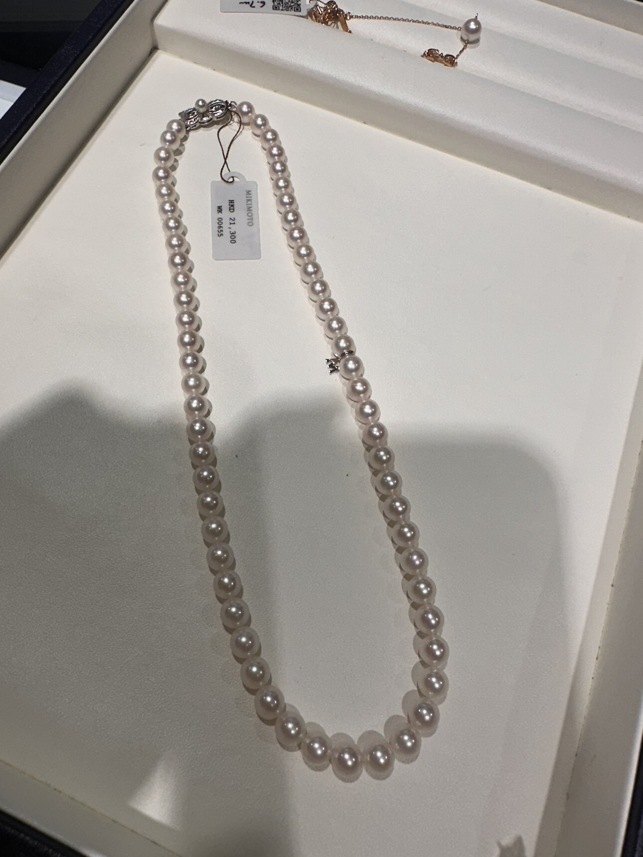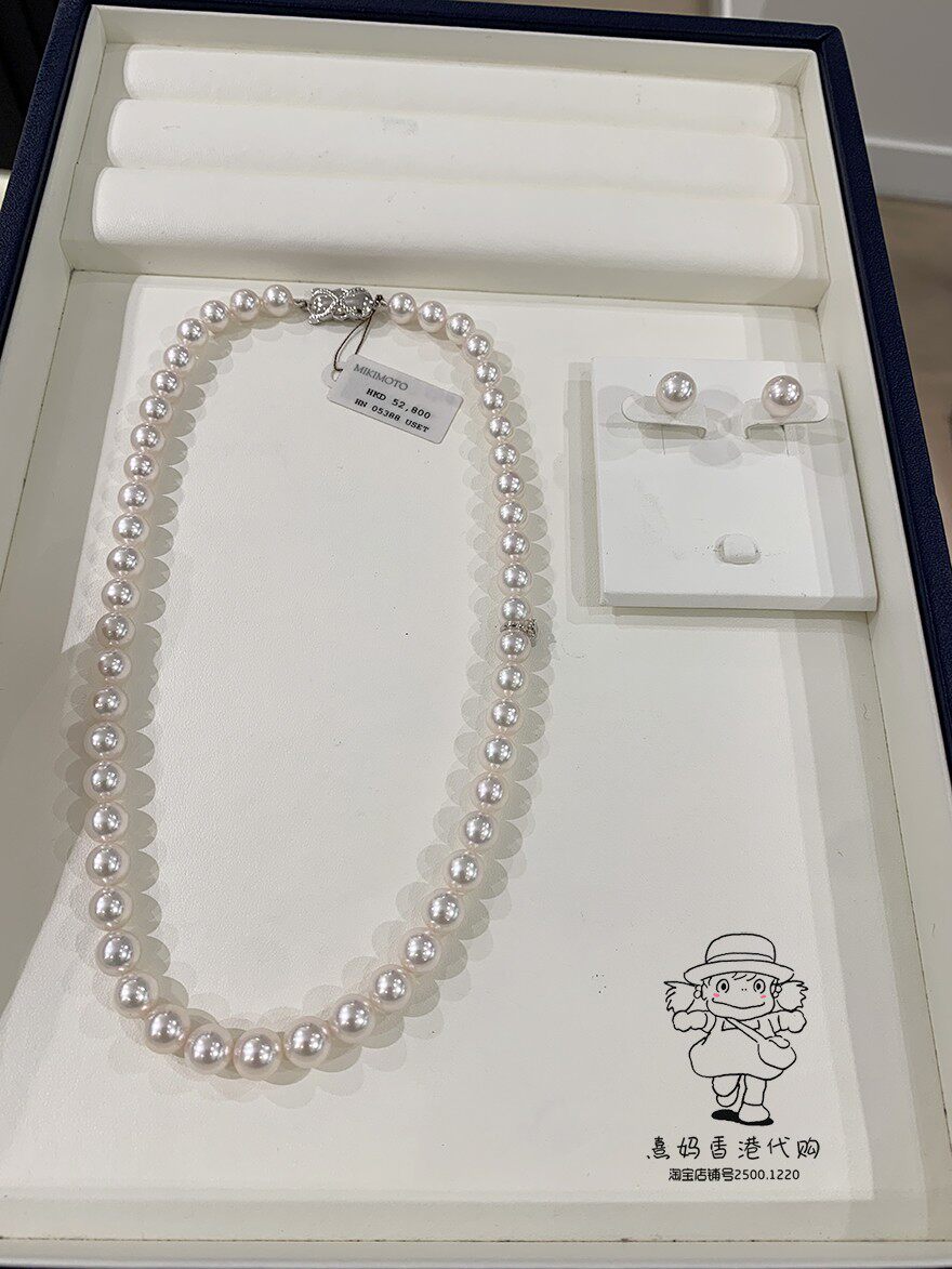 香港MIKIMOTO御木本18白金Akoya海水珠一整串珍珠女生项链配耳钉