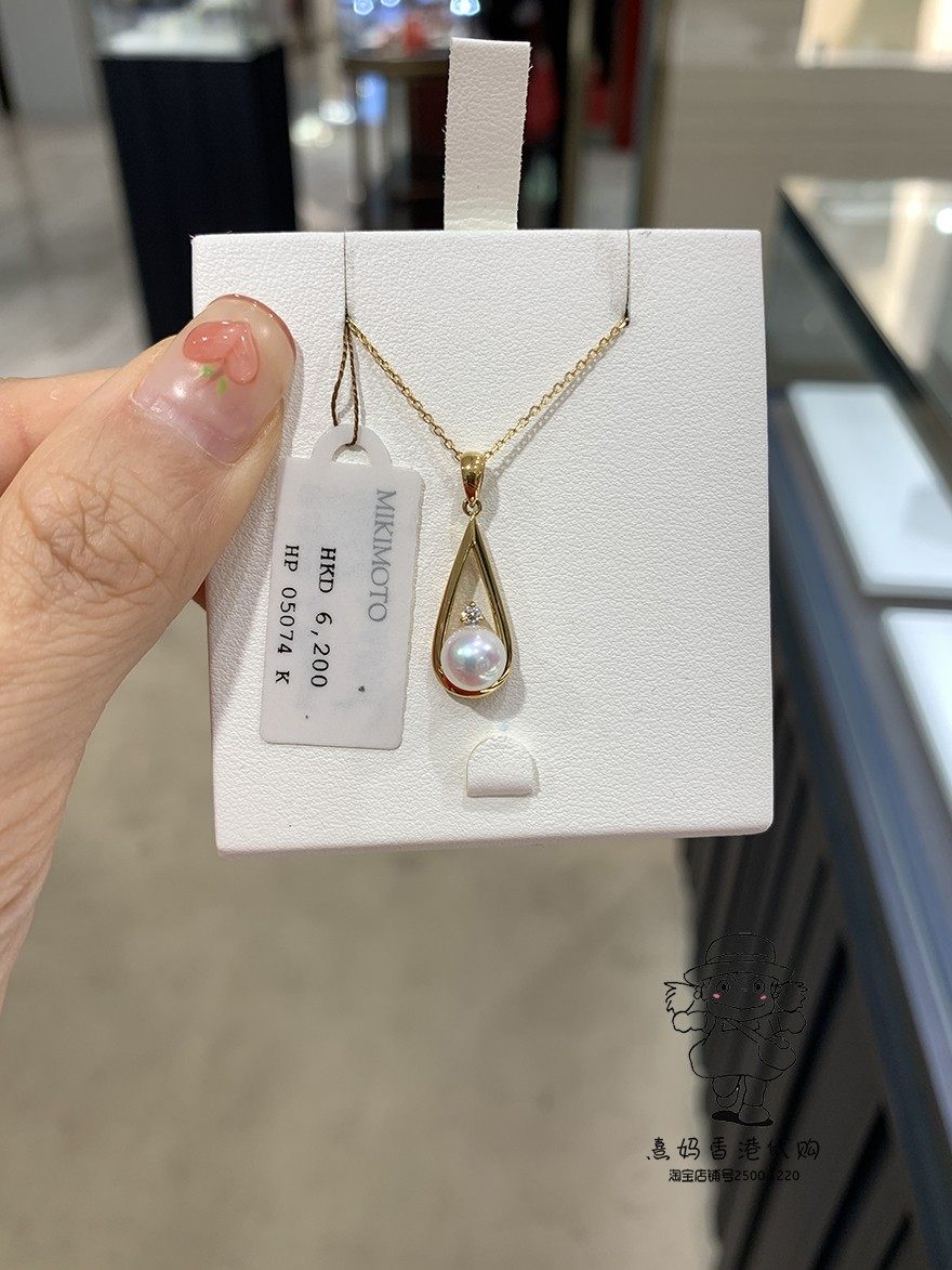 香港MIKIMOTO/御木本18K黄金镶钻石akoya珍珠水滴型女生项链