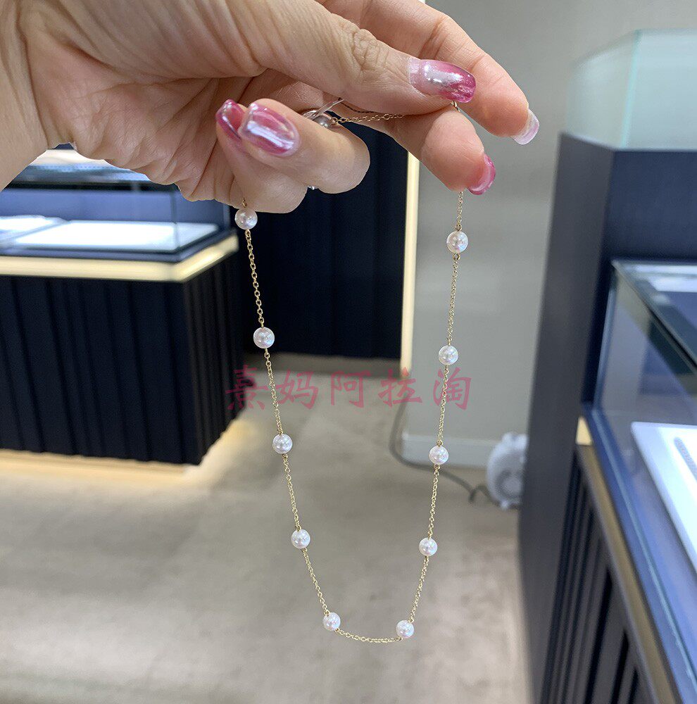 香港MIKIMOTO御木本18K黄金akoya海水珍珠满天星女生项链颈链40cm