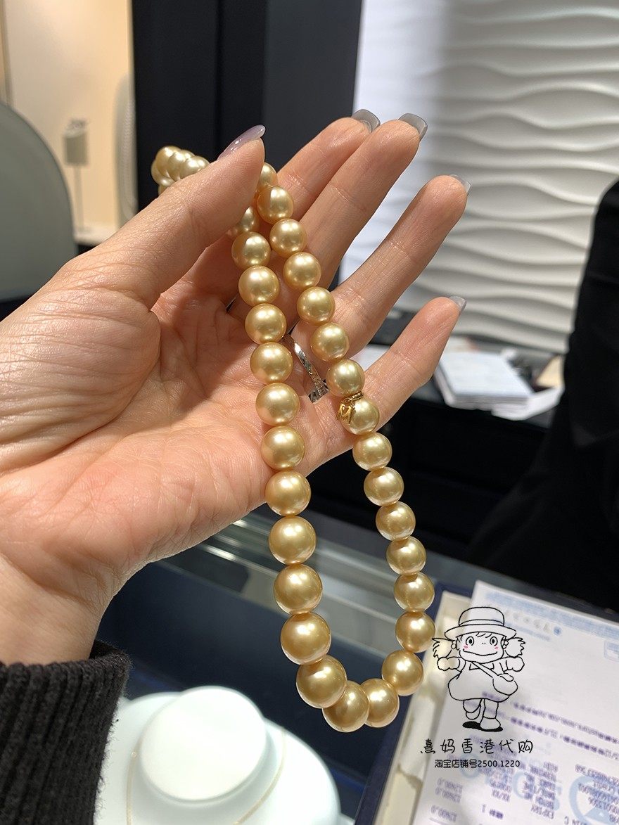 香港MIKIMOTO御木本18k黄金扣南洋金色珍珠一整串女生项链11.2mm