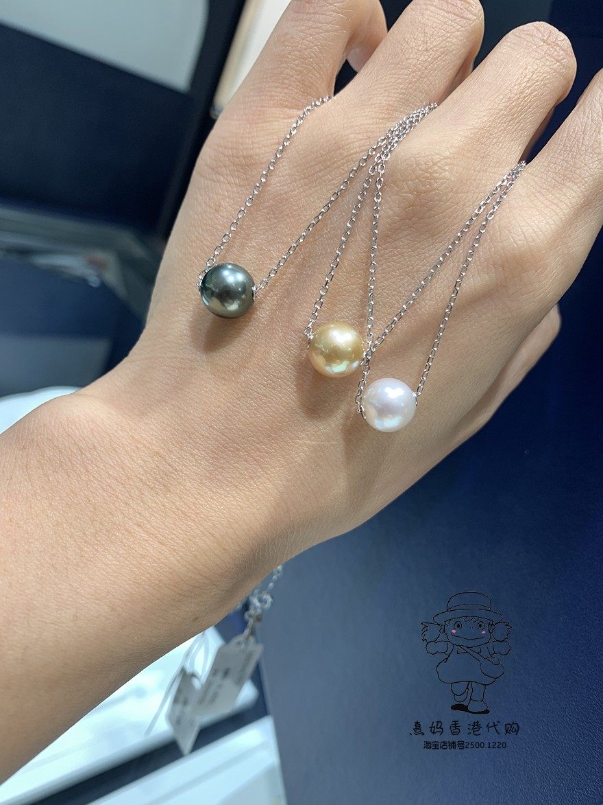 香港MIKIMOTO御木本18k金钻石南洋金珠大溪地黑珍珠女生项链 2色