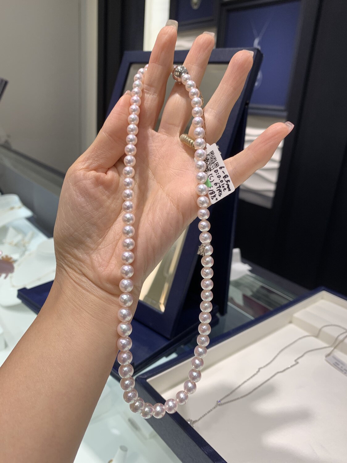 香港MIKIMOTO御木本18k白金蝴蝶扣一整串珍珠项链6.5mm等级Q5