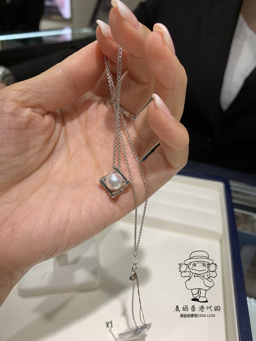 香港MIKIMOTO/御木本18k白金akoya海水珍珠M字母围边女生项链50cm