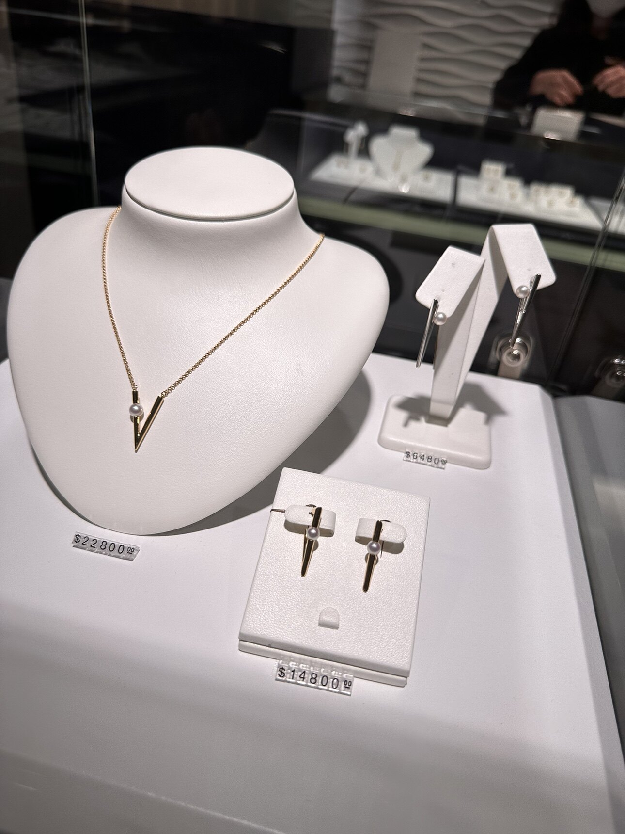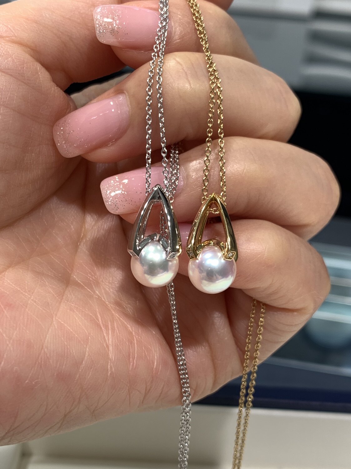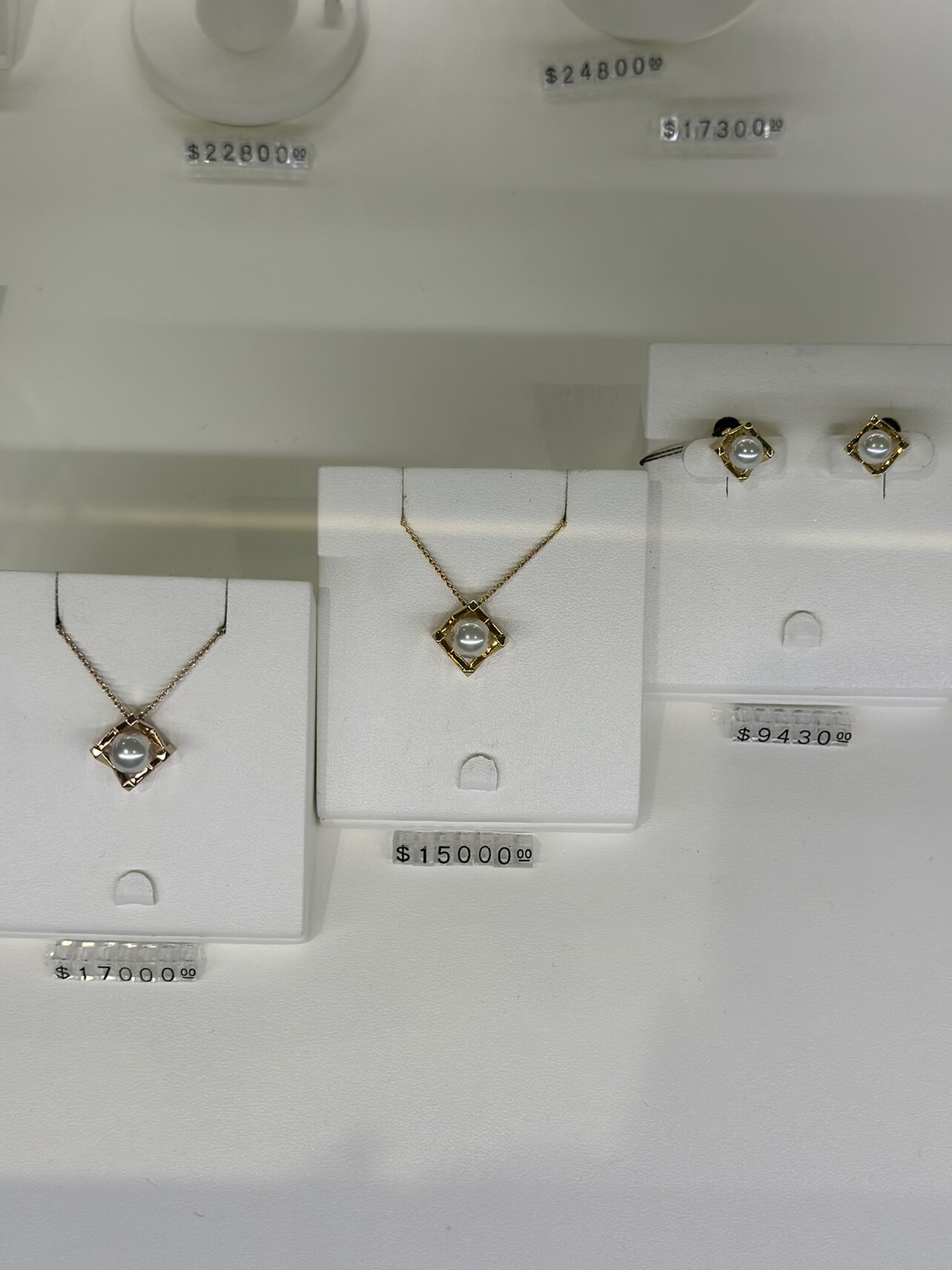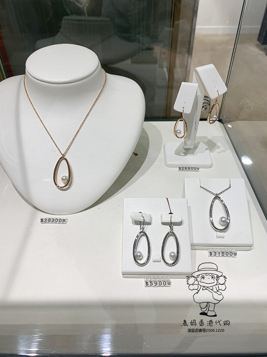 香港MIKIMOTO御木本18k黄金V型设计Akoya海水珍珠女生项链耳环