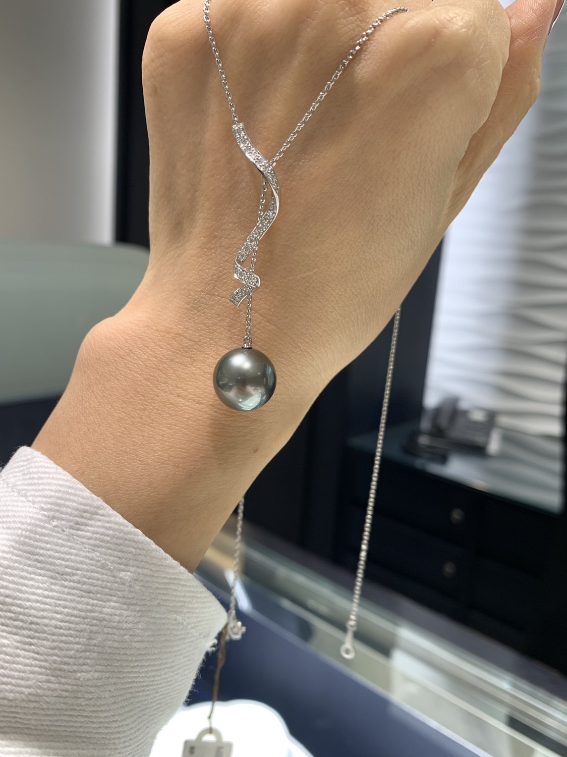 香港MIKIMOTO御木本18k白金钻石扭纹银灰大溪地黑珍珠女生项链12