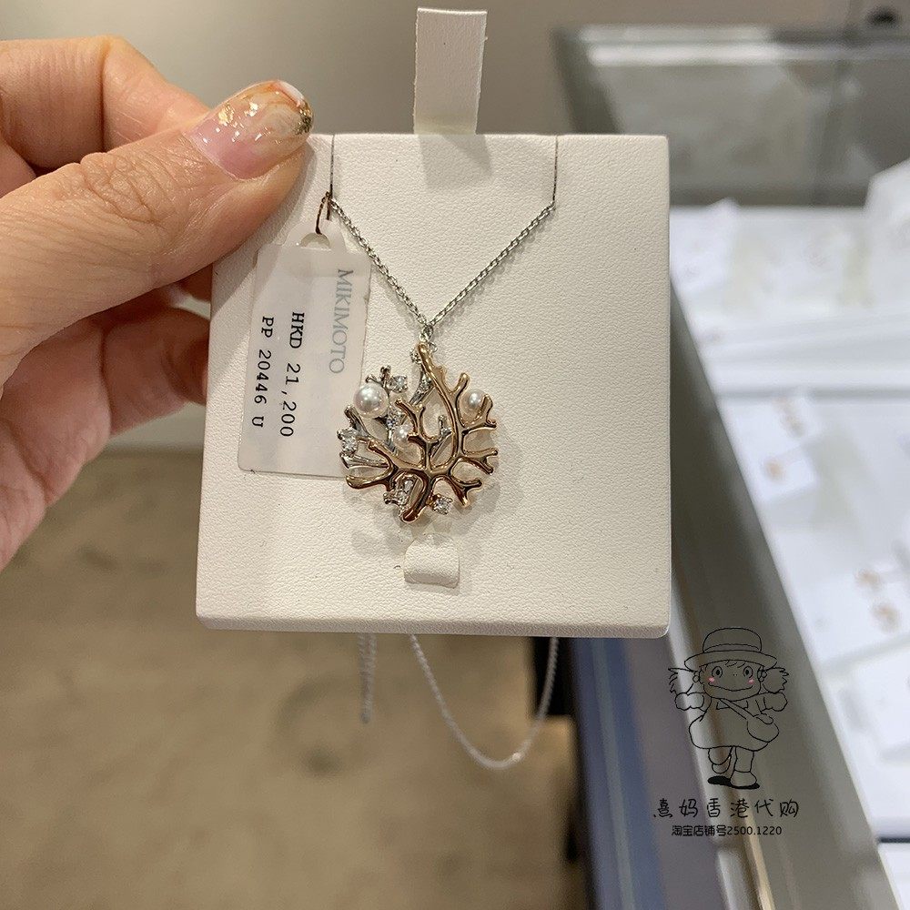 香港MIKIMOTO御木本18K玫瑰金钻石海水珍珠珊瑚枝型吊坠项链