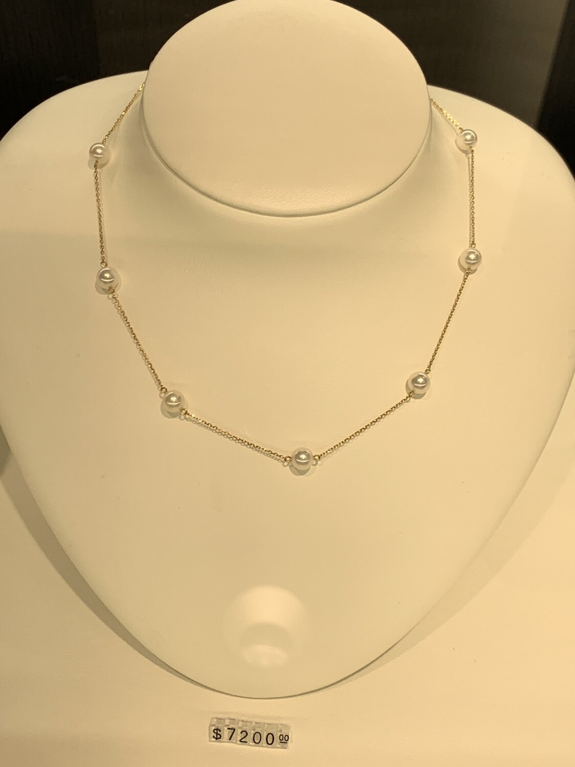 香港mikimoto御木本18K黄金akoya海水珍珠满天星项链6mm11珠40cm