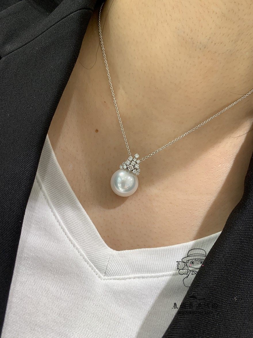 MIKIMOTO/御木本18K白金钻石三层akoya珍珠女生项链大南洋珠吊坠