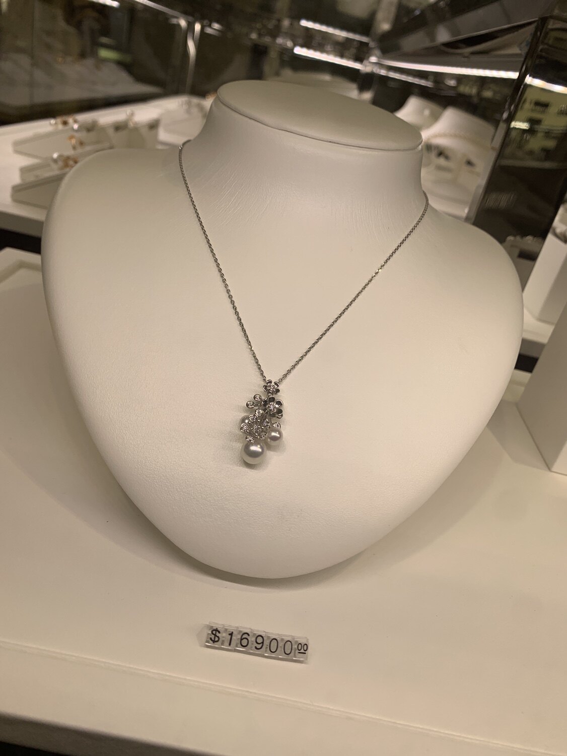 香港MIKIMOTO御木本18白金钻石Akoya海水珍珠一簇小花花女生项链