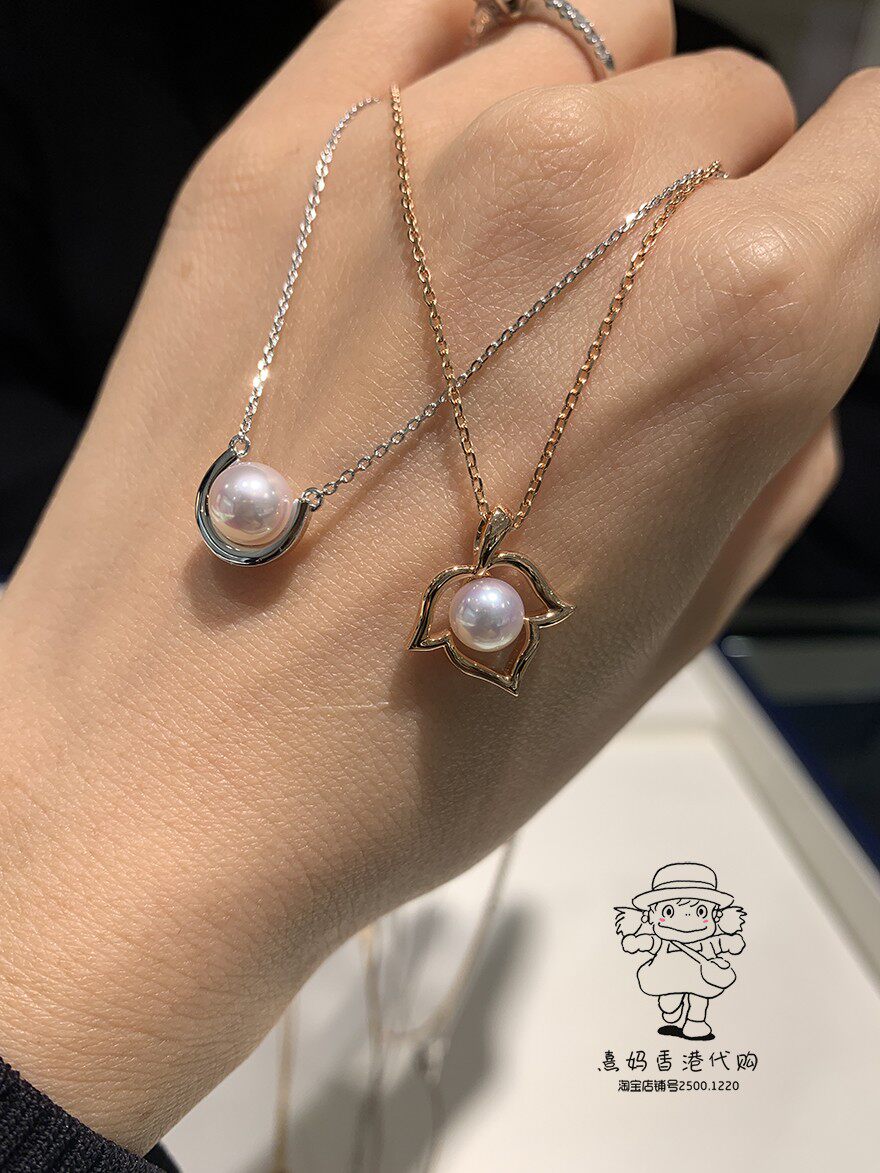 香港MIKIMOTO/御木本18k玫瑰金akoya海水珍珠花花女生项链 两款