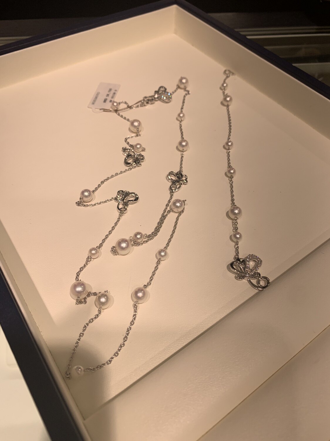 香港Mikimoto18k金钻石蝴蝶款Akoya海水珍珠女生毛衣链项链可变化