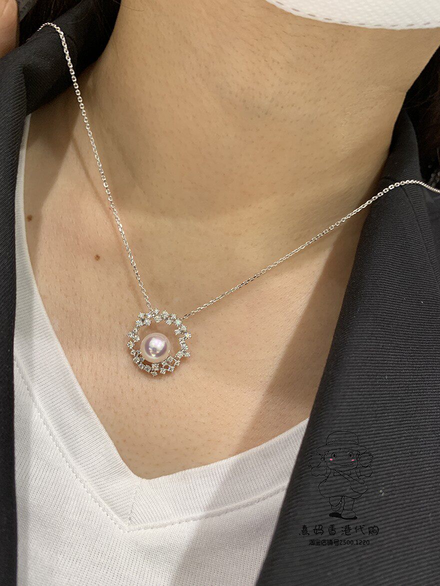 香港MIKIMOTO御木本18k白金圆圈镶钻石akoya海水珍珠女款项链爆款