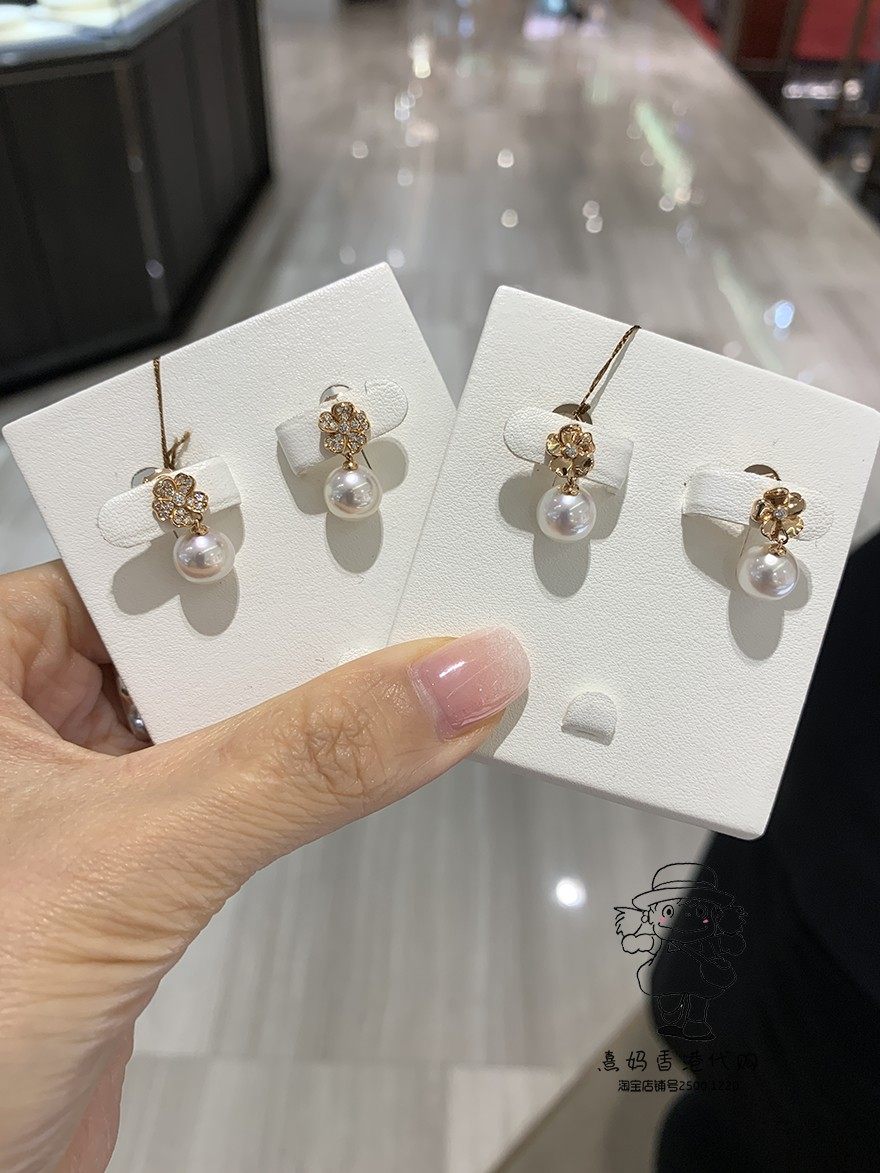 香港MIKIMOTO御木本18白金Akoya海水珍珠立体花花女生耳环项链美