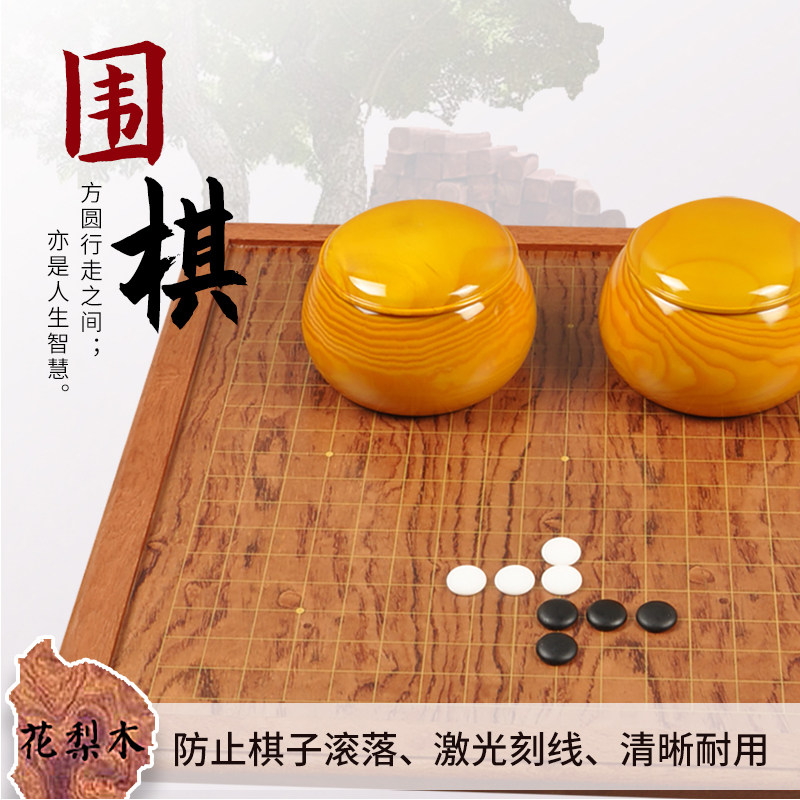 围棋棋盘套装新云子五子棋围棋象棋二合一实木双面棋盘益智黑白棋