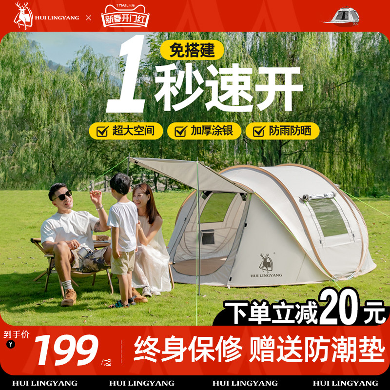 徽羚羊一秒速开全自动帐篷户外便携式折叠露营野营过夜加厚涂银