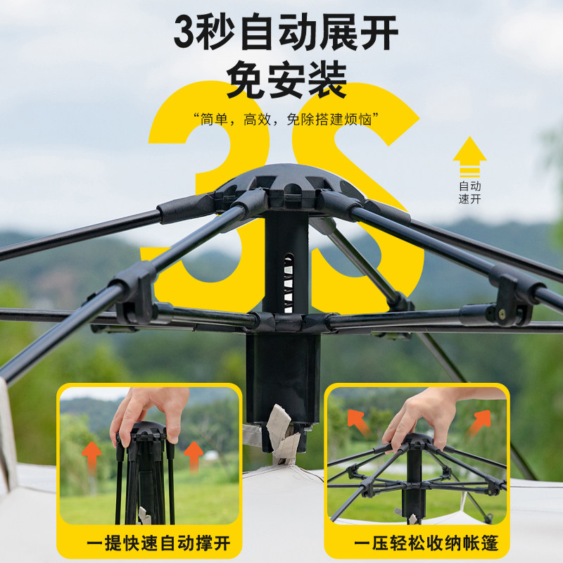 帐篷户外野营过夜折叠便携式全自动露营装备防雨遮阳防晒加厚涂银