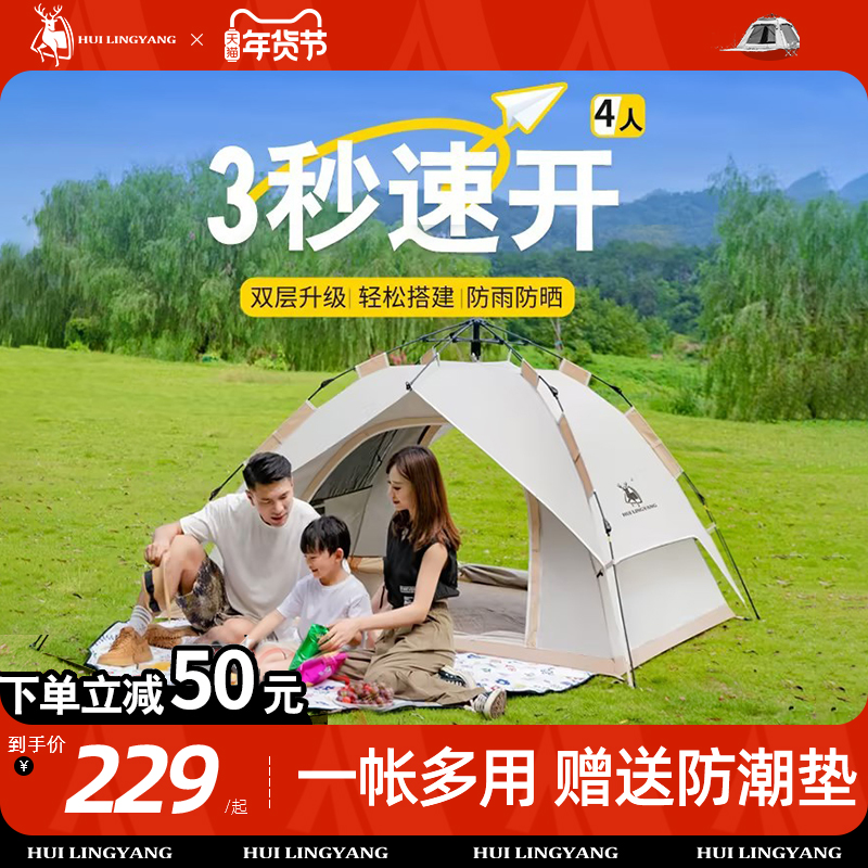 徽羚羊3-4人四季速开免搭建自动帐篷便携式可折叠防雨露营帐