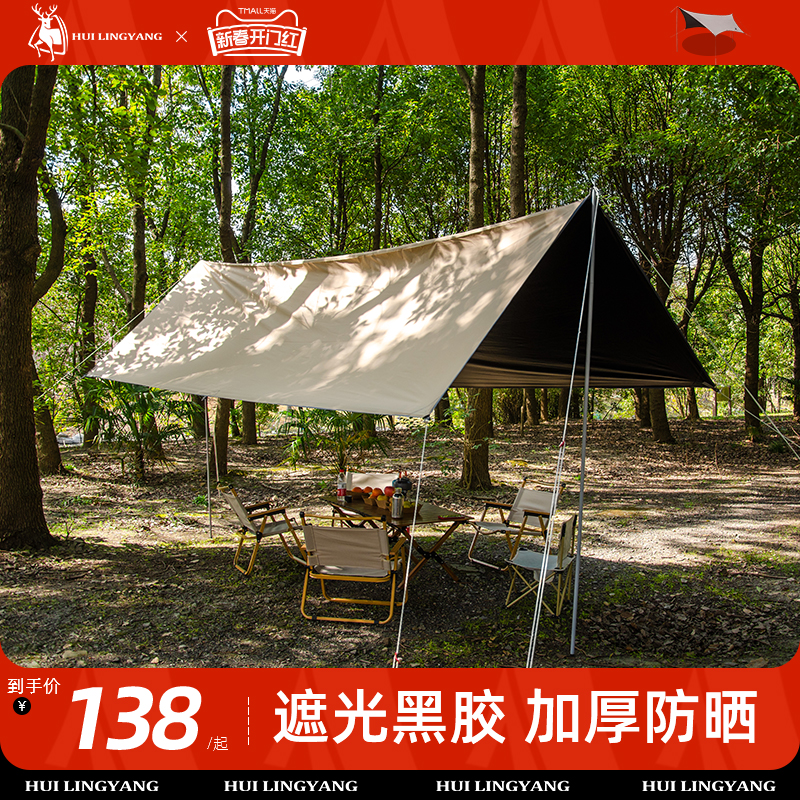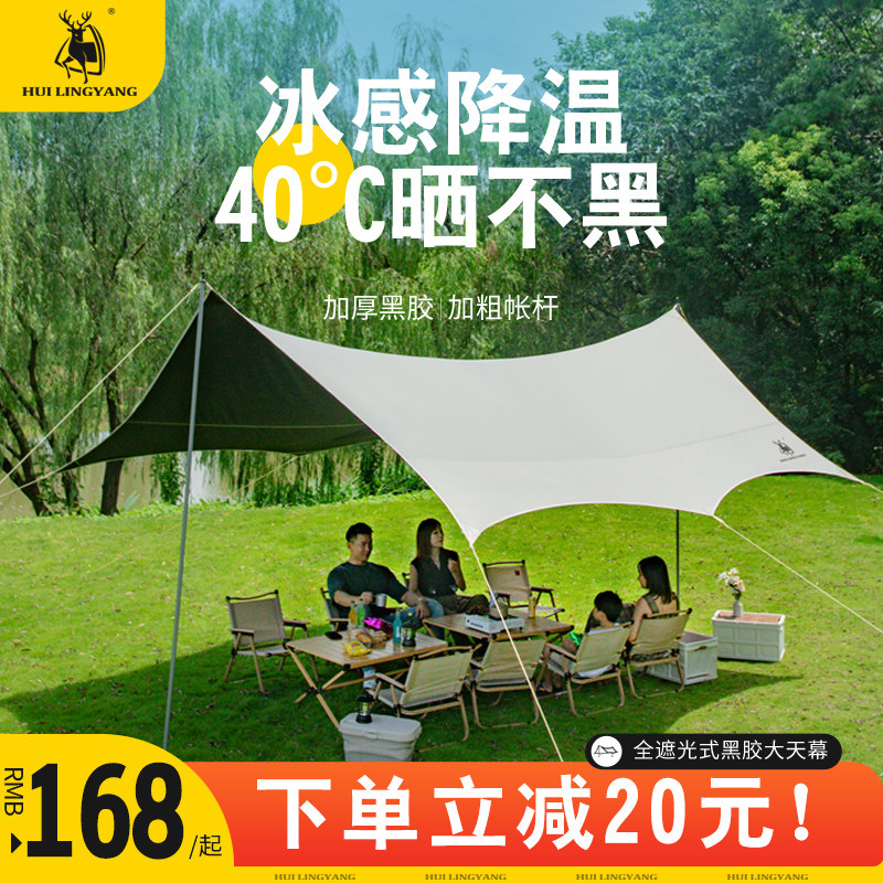 !徽羚羊 天幕帐篷户外露营遮阳便携黑胶防晒防雨凉棚野营装备}