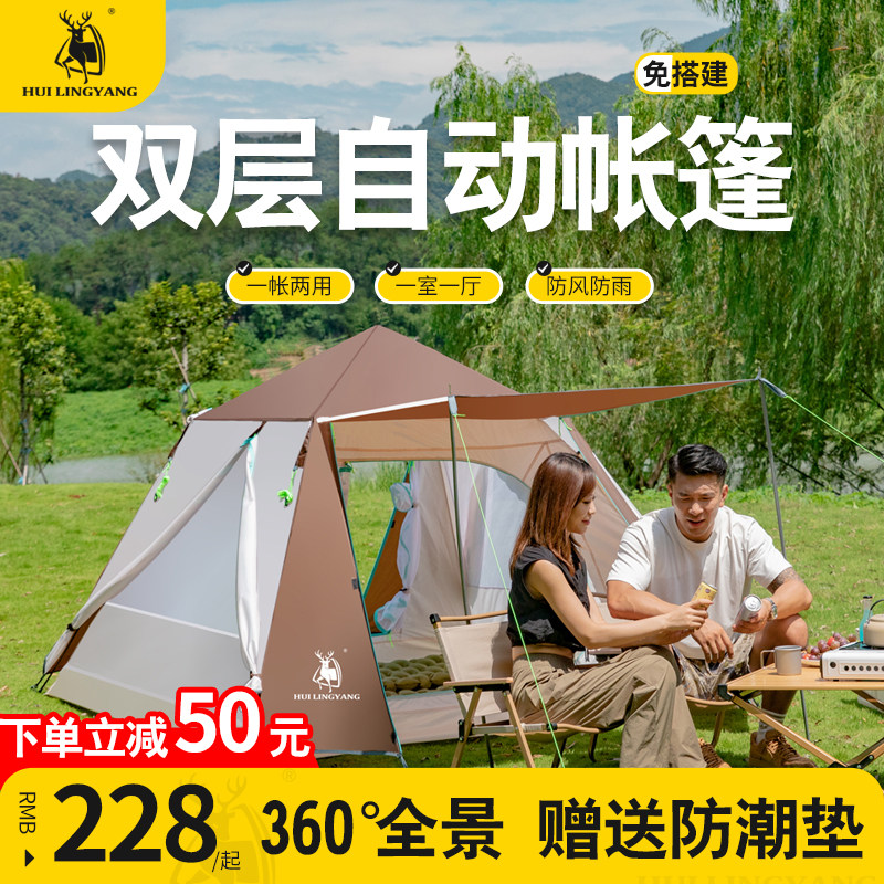 徽羚羊两用双层户外帐篷折叠便携式自动野营露营过夜装备防雨防晒