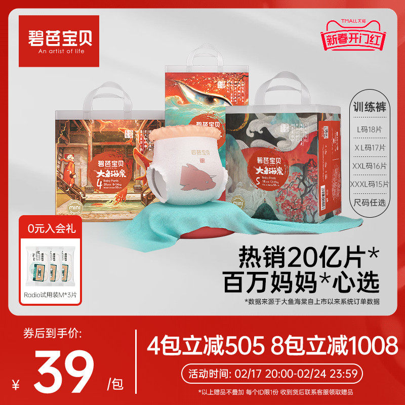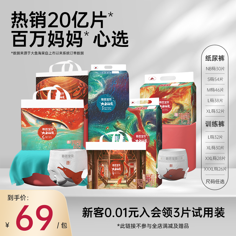 【尺码任选】碧芭宝贝大鱼海棠纸尿裤拉拉超薄透气尿不湿NB-3XL码