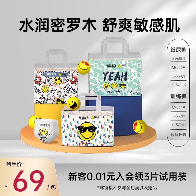 【尺码任选】碧芭宝贝Smiley笑脸婴儿拉拉裤纸尿裤SMLXXL尿不湿