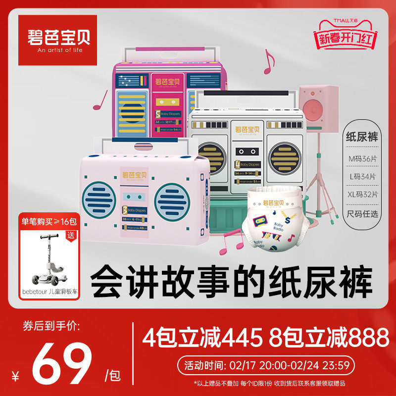 碧芭宝贝Radio收音机婴儿纸尿裤超薄透气M/L/XL大码宝宝尿不湿