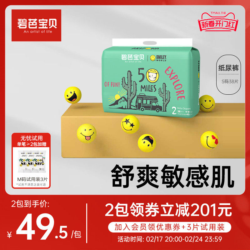 【新生儿】碧芭宝贝Smiley笑脸婴儿纸尿裤超薄透气S38尿不湿尿片