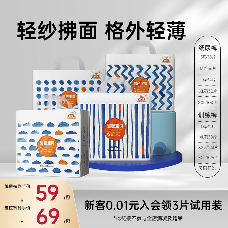 【尺码任选】碧芭宝贝盛夏光年婴儿尿不湿轻柔纸尿裤拉拉裤S-XXXL